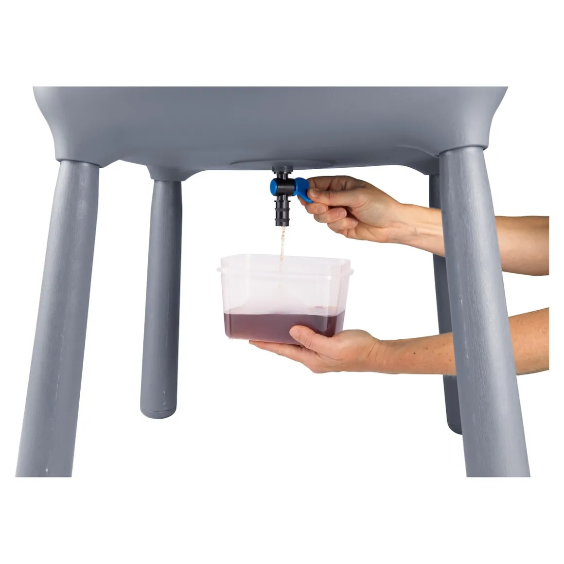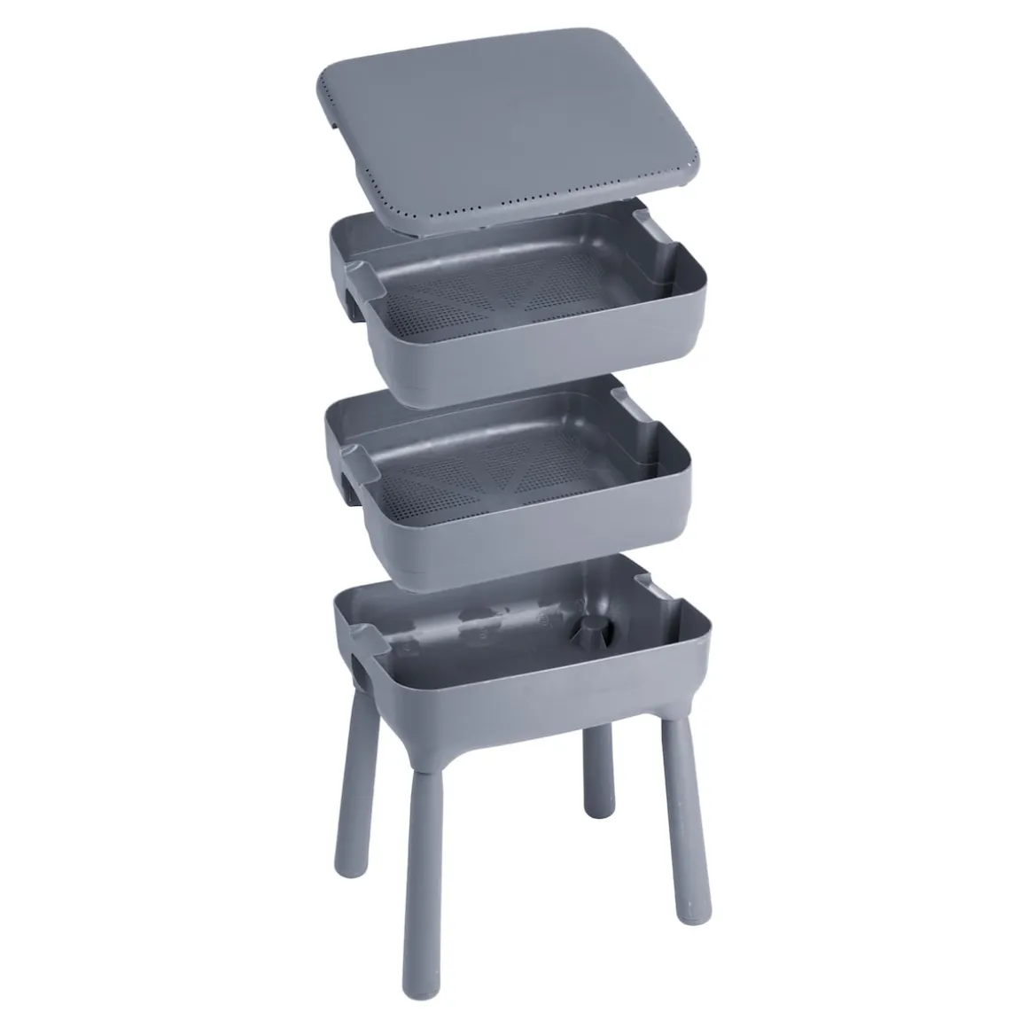 Verwandeln Sie Bioabfälle aus der Küche in nachhaltigen Pflanzendünger oder mithilfe von Würmern sogar in Humus. Dank des 3-Etagen-Konzeptes ist der Komposter nicht nur enorm leistungsfähig, sondern passt auch platzsparend auf Balkone. Das Ablassventil im unteren Teil sorgt für die bequeme Entnahme des produzierten flüssigen Pflanzendüngers. Der dicht schließende Deckel verhindert Geruchsbildung.