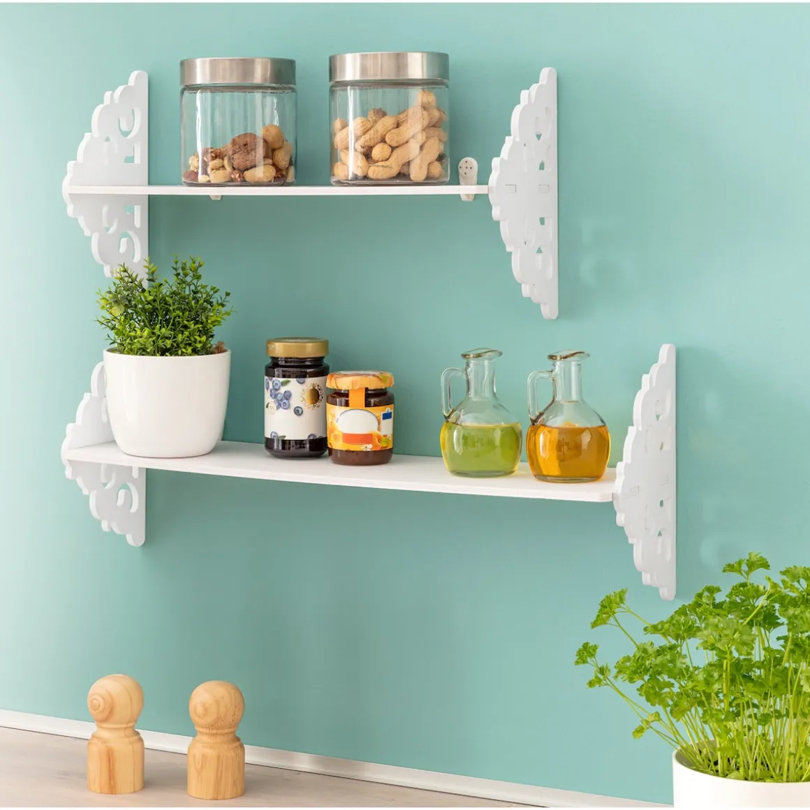 Ablagen kann man in der Küche nie genug haben! Diese 2 dekorativen Wandregale schaffen wertvollen zusätzlichen Stauraum für Gewürze, Kräuter und alles, was stets griffbereit sein sollte.