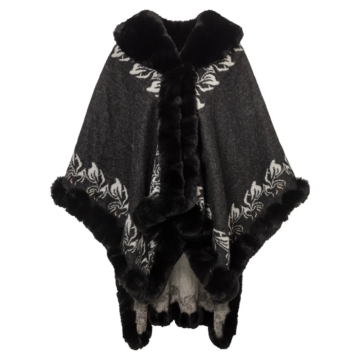 Dieser angenehm zu tragende Poncho bietet nicht nur mollige Wärme, er ist auch ein echtes Wendewunder: Einfach umdrehen und überwerfen – schon passt er perfekt zu Ihrem Outfit! Ob bei einem entspannten Spaziergang oder einem glamourösen Abendevent – der Poncho mit kuscheligem Kunstfell am Saum ist zu jedem Anlass die richtige Wahl.