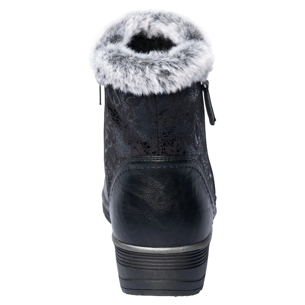 Perfekt für kältere Tage: Das wärmende Futter dieser bequemen Stiefelette verwöhnt Sie mit einem angenehmen Tragegefühl, während der Reißverschluss Komfort beim An- und Ausziehen beweist. Mit weicher Decksohle. Rutschhemmender Keilabsatz, Schafthöhe: 12 cm.