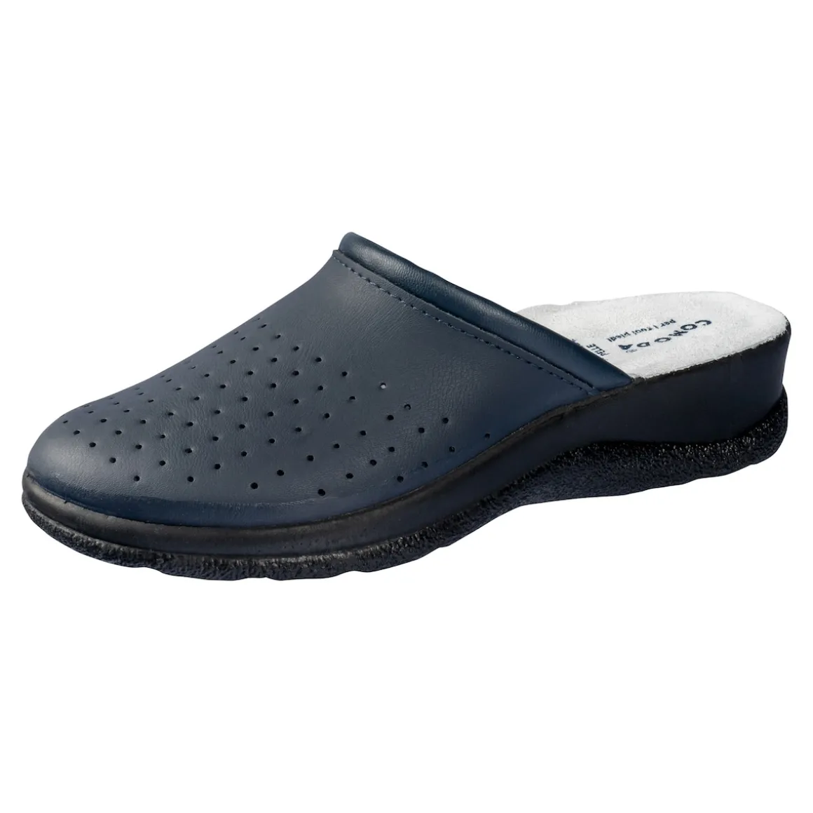 Mit der Lederpantolette für Herren gönnen Sie sich und Ihren Füßen maximalen Komfort und das bei jedem Schritt. Das anschmiegsame Obermaterial (beschichtetes Leder) umschließt den Fuß angenehm und sorgt mit den integrierten Lüftungslöchern für ein gutes Fußklima – auch bei warmem Wetter. Die Laufsohle dämpft die Schritte, sodass Sie bequem gehen können. Ob zu Hause oder im Büro: Diese Pantolette gehört sicher schon bald zu Ihren Lieblingsschuhen.