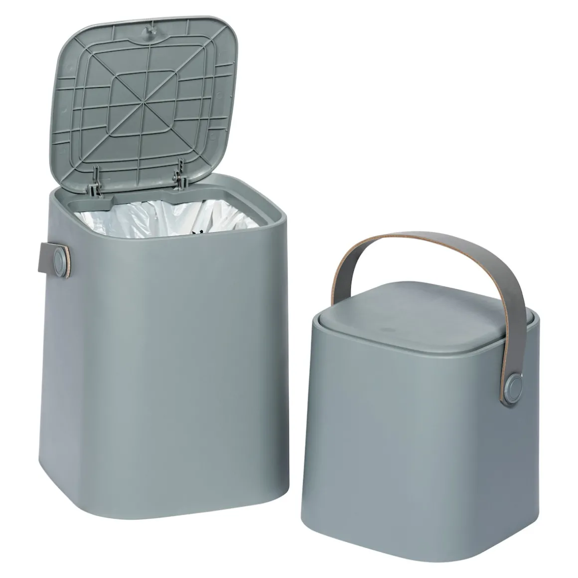 Sind Sie bereit, den Abfall künftig stilvoll zu entsorgen? Dieser Mülleimer sieht nicht nur trendig aus, er überzeugt auch mit Raffinesse: Der Deckel hält unangenehme Gerüche unter Verschluss – dabei genügt ein leichter Druck, um den Eimer zu öffnen. Der separate Eimer im Inneren hält den Müllbeutel sicher fest – der äußere Eimer wird zum Entleeren einfach angehoben. Praktisch: Beim Transport fixiert der aufrecht stehende Tragegriff den Innenbehälter.