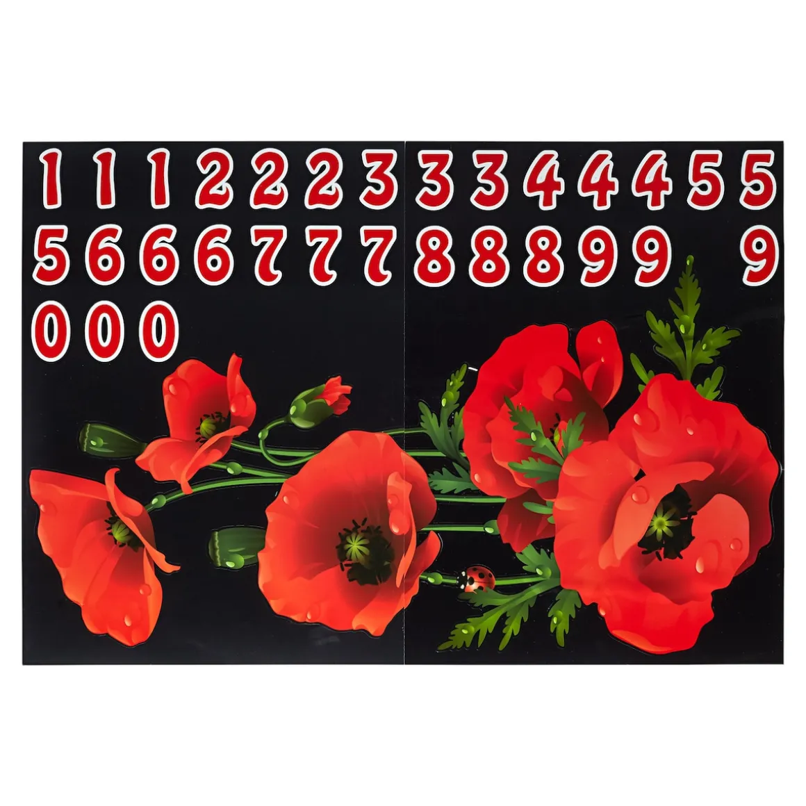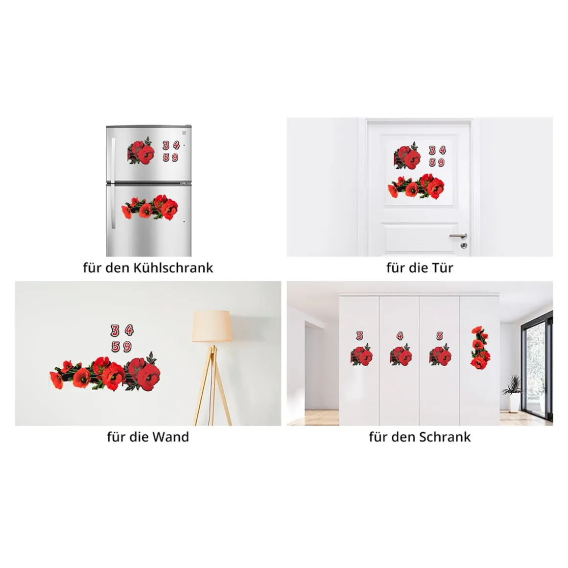 Zur Verschönerung und Kennzeichnung: Farbenfrohe Mohnblumen-Aufkleber für Ihre Mülltonnen – auch ideal für glatte Oberflächen wie Kunststoff, Glas, Fliesen, Kühlschrank, Türen, Wände oder Schränke. Die dekorativen Motive sind in verschiedenen Größen erhältlich und enthalten zusätzlich Zahlen zur individuellen Kennzeichnung.