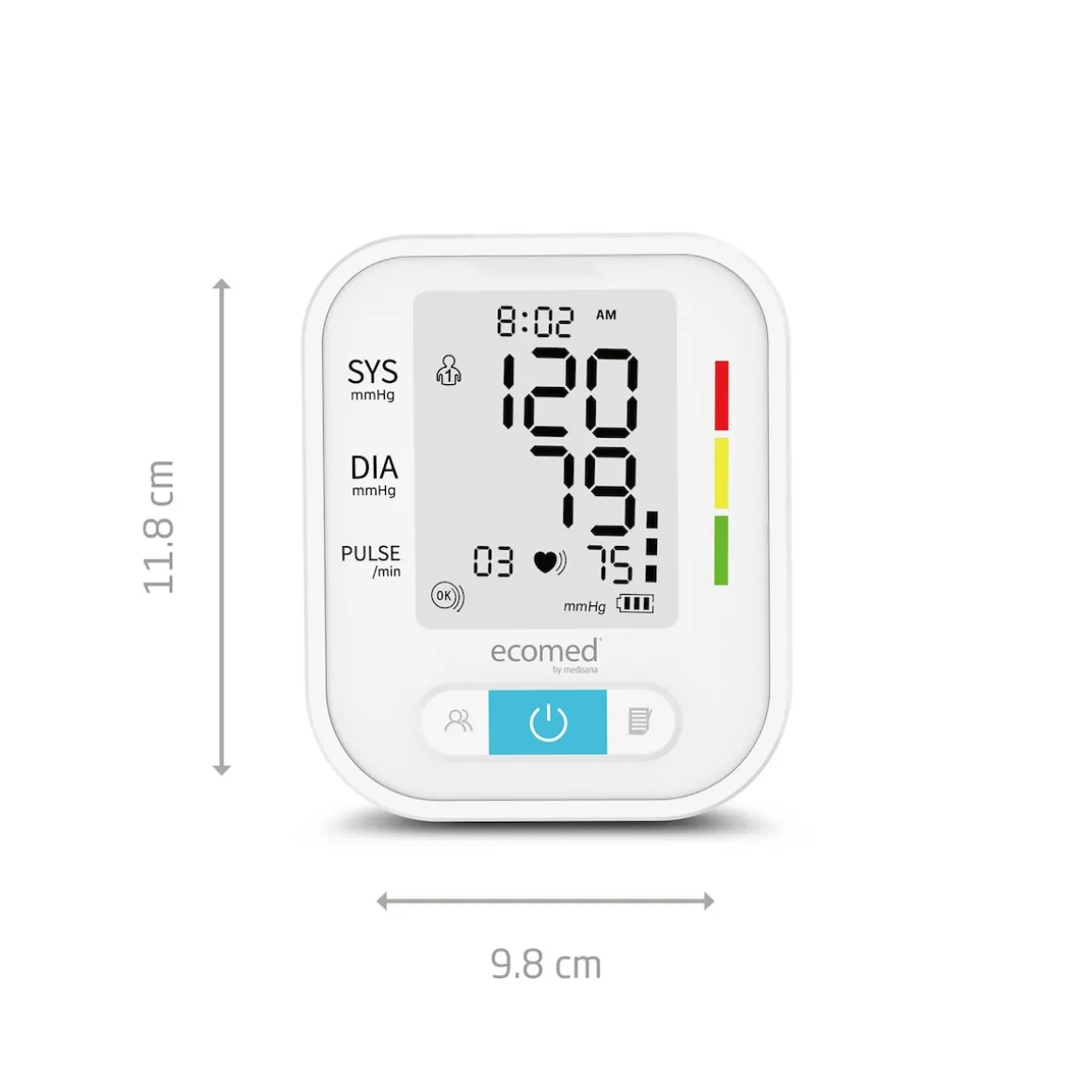 Mit dem BU-95E | Oberarm-Blutdruckmessgerät messen Sie Ihren Blutdruck schnell, komfortabel und präzise. Zwei Benutzer können jeweils 90 Messwerte speichern und Durchschnittswerte abrufen – ideal zur langfristigen Kontrolle. Das große, leicht lesbare Display zeigt Blutdruck, Puls, Datum und Uhrzeit an. Eine Ampel-Farbskala bewertet Ihre Werte, während eine Zusatzanzeige unregelmäßigen Herzschlag erkennt. Die extragroße Manschette passt sich angenehm an und sorgt für genaue Ergebnisse – auch bei größerem Armumfang. Ideal für Ihre tägliche Gesundheitskontrolle.