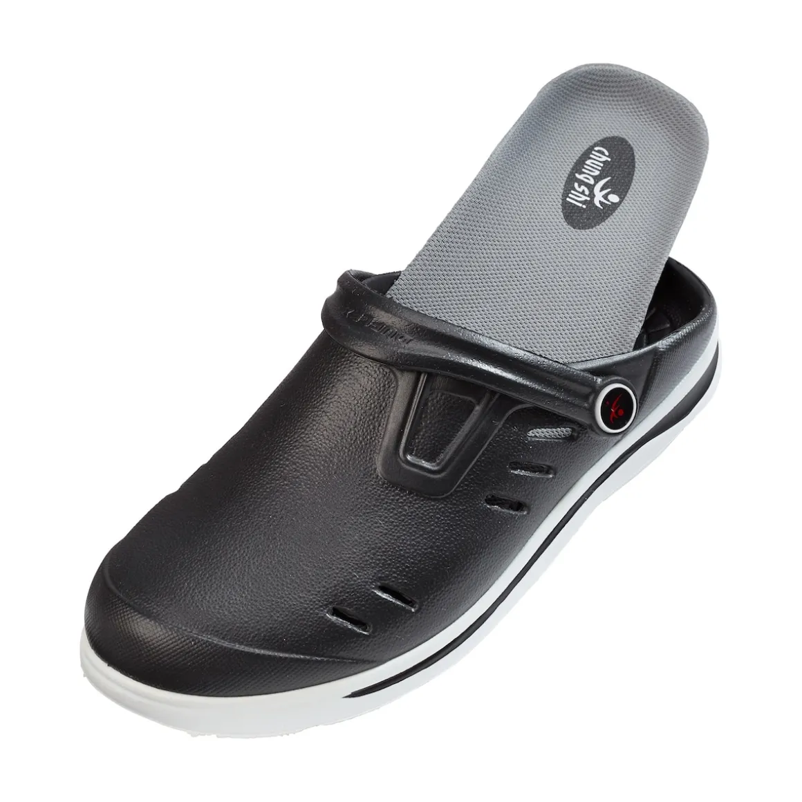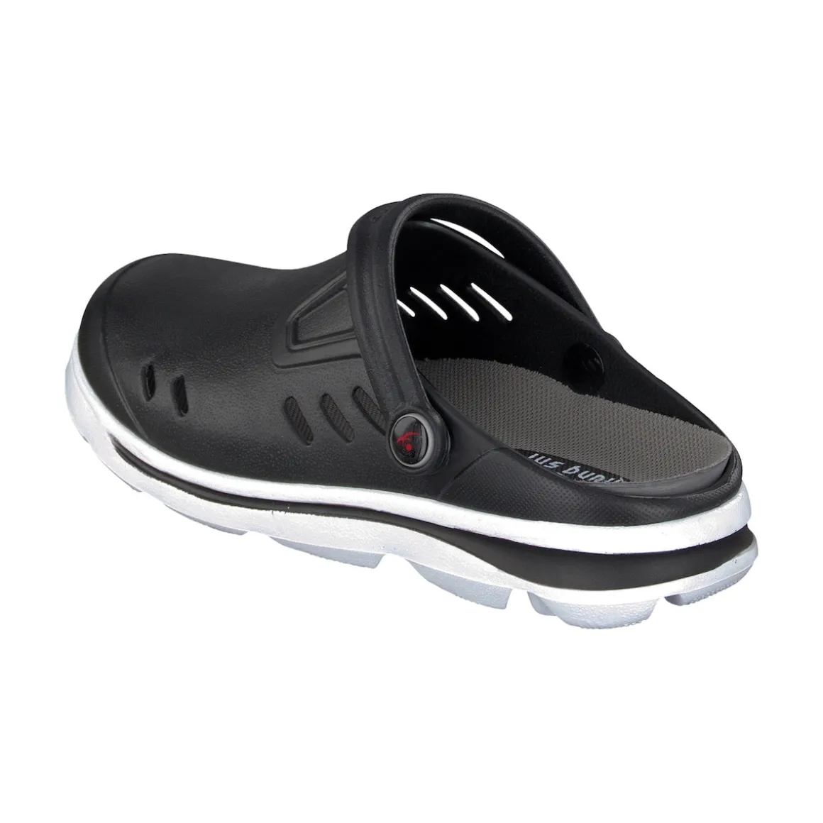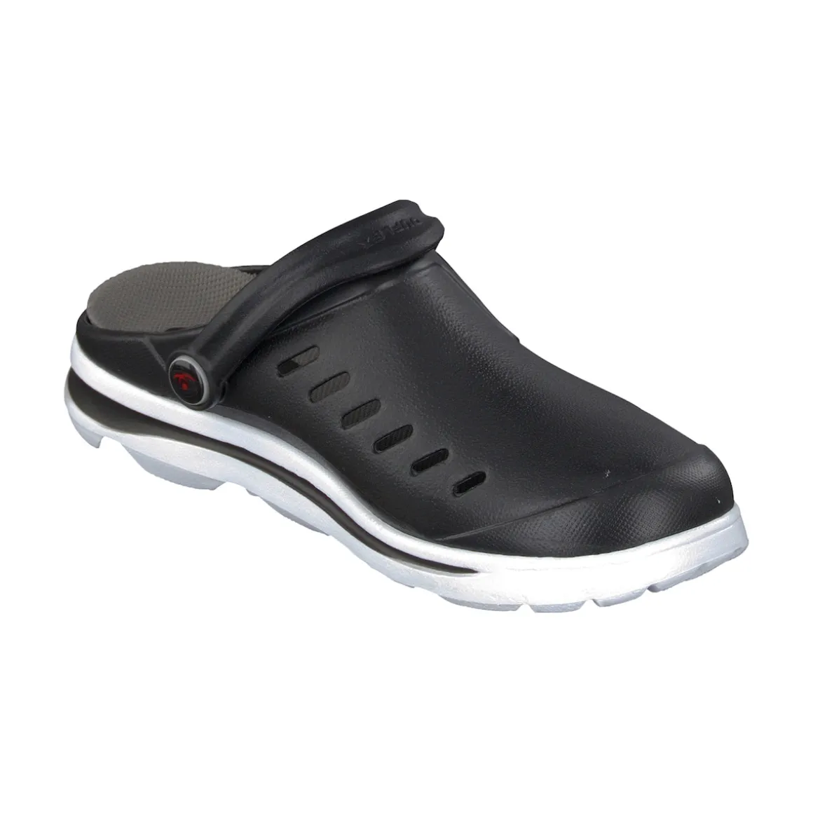Die auswechselbare, orthopädische Einlage positioniert den Fuß optimal und verbessert Abrollverhalten und Körperhaltung. Das innovative Duflex-Material ist unglaublich bequem. Mit umklappbarem Fersenriemen und profilierter, rutschhemmender Laufsohle. Aus EVA-Material Duflex. Schmale Passform – bitte eine Schuhgröße größer bestellen!