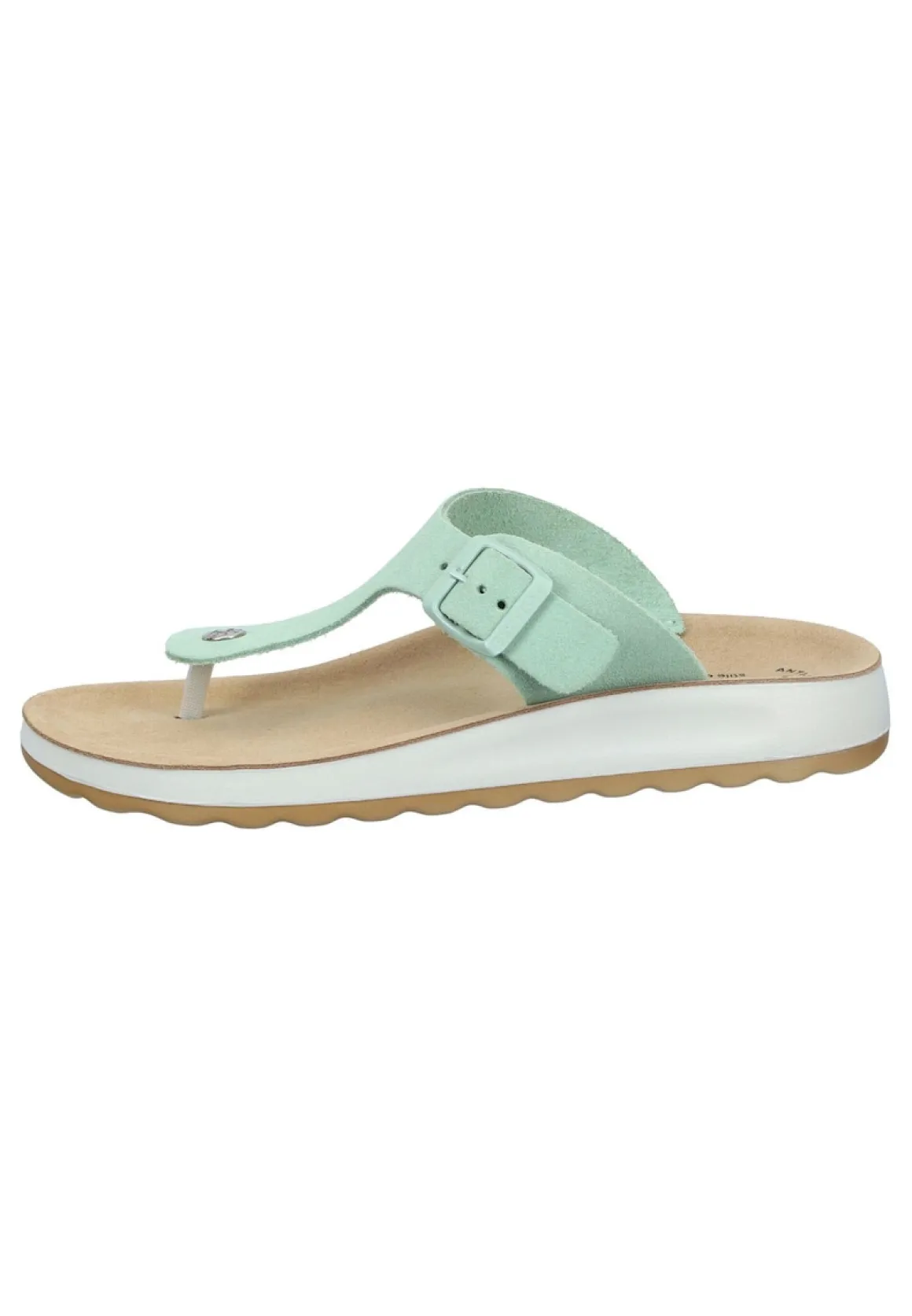 Bei diesem Produkt handelt es sich um einen Schuh aus der Kategorie Zehentrenner für Damen. Als Obermaterial wurde Veloursleder verwendet und im inneren Bereich des Schuhs wurde ungefüttert und gepolsterte Lederdecksohle verarbeitet. Die Schuhweite dieses Artikels ist normal und somit standard. Als Verschlussart wurde Schlupfschuh gewählt und die PU-Sohle rundet das Produkt ab. Der Artikel fällt normal aus, bitte die gewohnte Größe bestellen. – Schuhweite: normal –