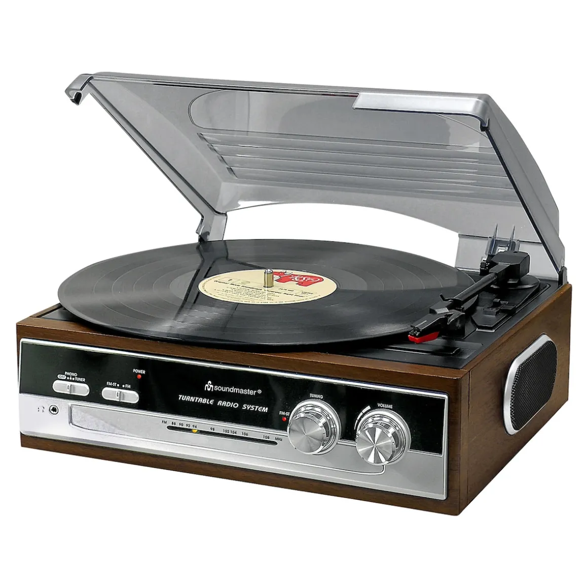 Musik hören wie in der guten alten Zeit: Dieser Plattenspieler in nostalgischem Siebzigerjahre Design spielt Ihre Plattenschätze in moderner Klangqualität ab. Drei Geschwindigkeitsstufen: 33, 45 und 78 UpM. Mit hochwertigen Stereoboxen. Inklusive Adapter für Singles. Kabellänge 1,6 m. Netzbetrieb 230 V.