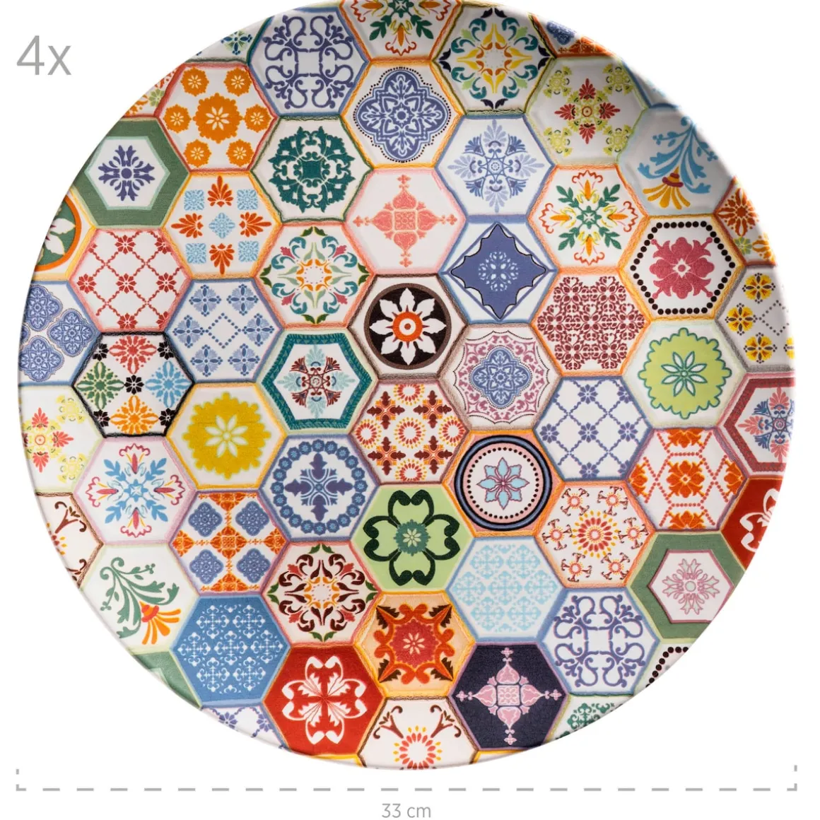 Die Keramikgeschirr Serie „Amarante“ der österreichischen Traditionsmarke Mäser sticht durch das markante Ornament-Dekor sofort ins Auge. Die Kollektion ist von der traditionellen Fliesenkunst in Portugal inspiriert und versprüht südländische Lebensfreude. Die verschiedenen kleinen Details fügen sich auf der modernen, großzügig gehaltenen Coupe-Form zu einem harmonischen Gesamtbild zusammen, das den perfekten Rahmen für Ihre kulinarischen Kreationen bildet. Gefertigt in Portugal aus hochwertigem Steinzeug, werden Sie an dieser besonderen Essgeschirr-Kollektion lange Freude haben. Die gesamte Tafelgeschirr Serie „Amarante“ ist mikrowellen- und spülmaschinengeeignet, ohne dass das schöne Dekor an Glanz verliert. Dieses Set wird in einer auf Bruchsicherheit getesteten Paketversandverpackung aus ressourcenschonenden Materialien versendet. Um eine objektive Vergleichbarkeit zu gewährleisten, gehen unsere Füllmengenangaben von einer randvollen Befüllung aus.