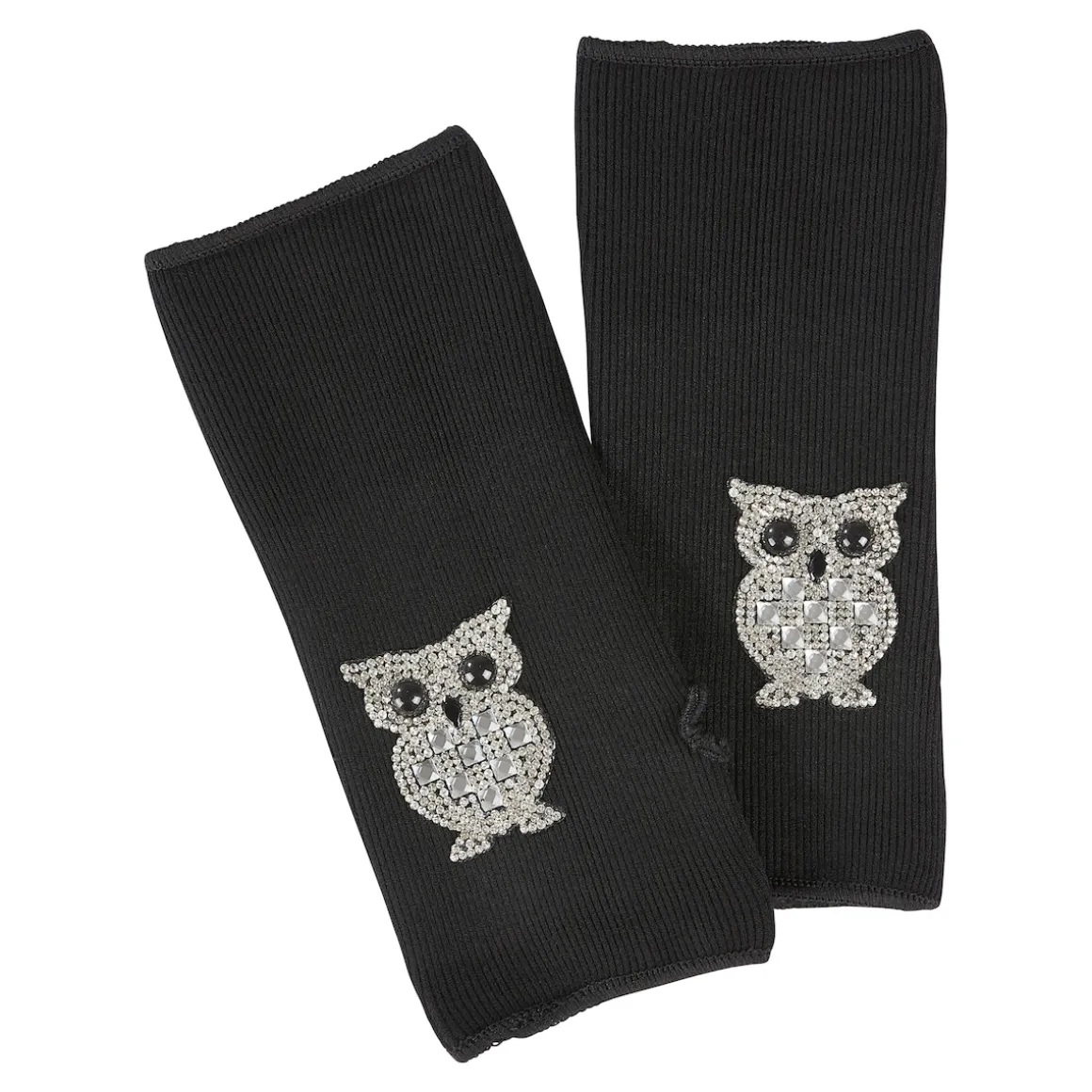 Elastische Pulswärmer, die Dank vieler kleiner Strasssteinchen in Form einer Eule effektvoll glitzern. Innen warm angeraut. Mit Schlupfloch für den Daumen. Einheitsgröße.