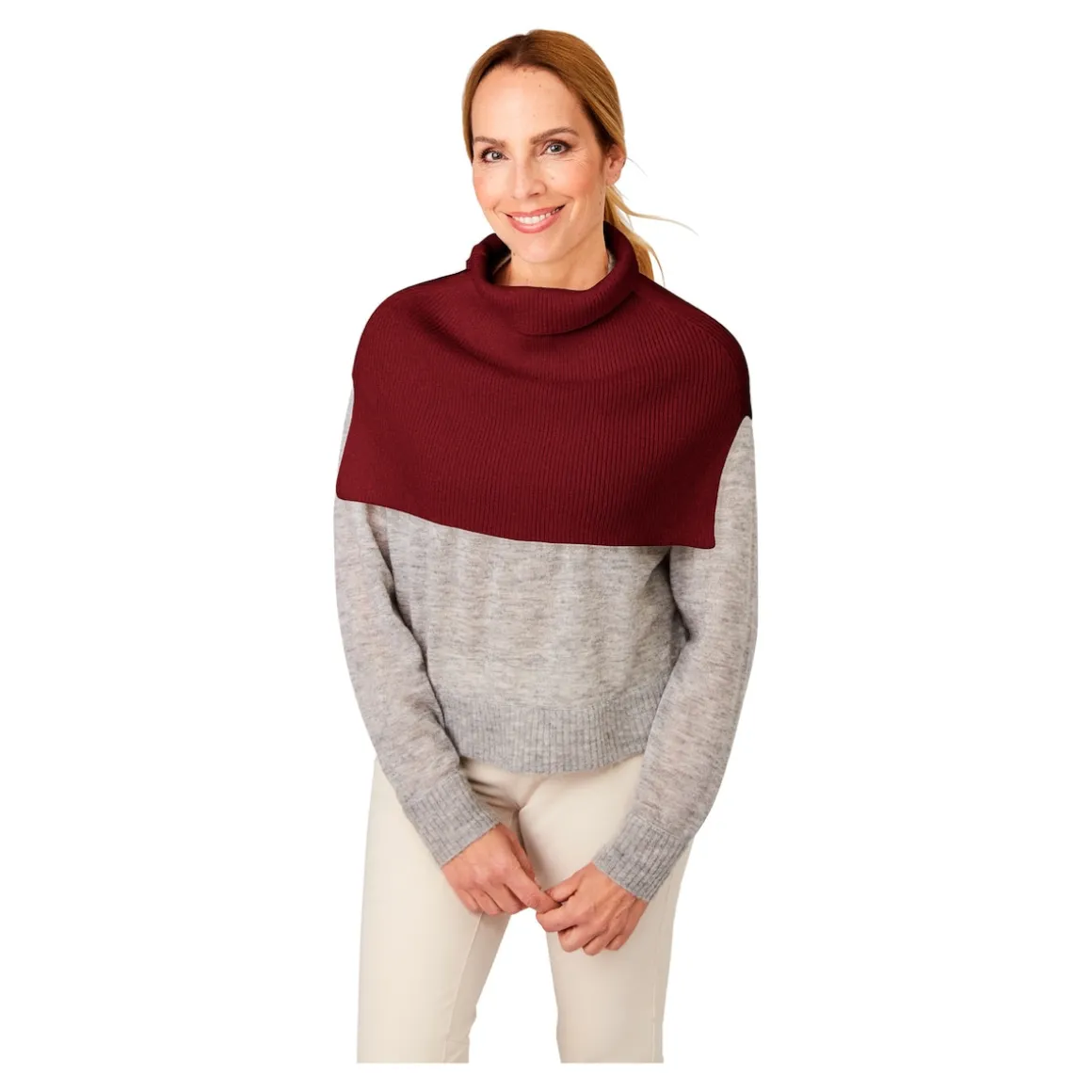Sie kennen es: In der Übergangszeit ist ein Strickpulli oft zu warm – der Rollkragen-Einsatz bietet hierfür eine stilvolle Lösung. Er wärmt die Hals- und Nackenpartie, ohne zu dick aufzutragen. Über Blusen getragen, wird er sogar zum eleganten Cape.
