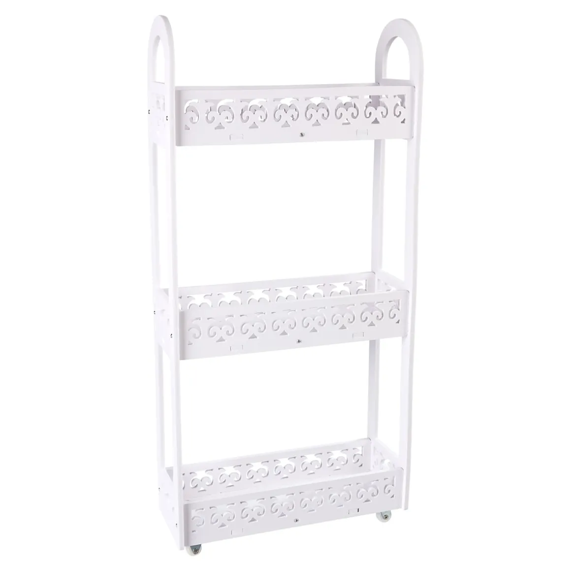 Das elegante Design verleiht Ihrem Raum eine ästhetische Note, ohne dabei auf Funktionalität zu verzichten. Mit diesem platzsparenden und zugleich vielseitigen Rollwagen können Sie Ihr Zuhause stilvoll organisieren und wichtige Dinge griffbereit haben. Erweitern Sie Ihre Eleganz mit diesem multifunktionalen Ordnungshelfer!