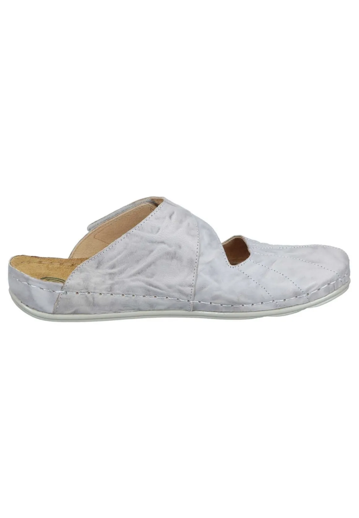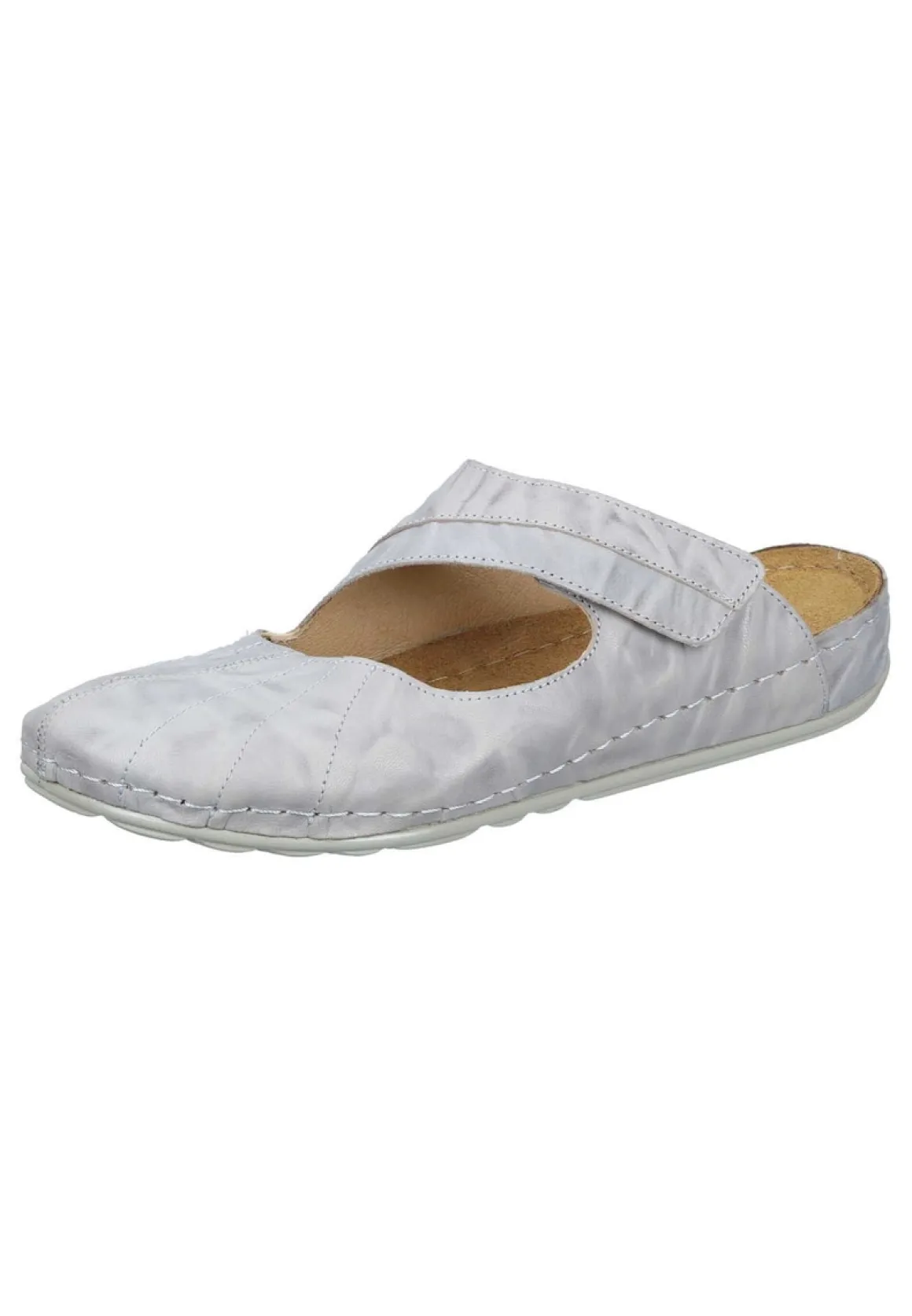 Bei diesem Produkt handelt es sich um einen Schuh aus der Kategorie Komfort-Pantoletten für Damen. Als Obermaterial wurde Leder verwendet und im inneren Bereich des Schuhs wurde Lederfutter und Lederdecksohle verarbeitet. Die Schuhweite dieses Artikels ist Weite G und somit normal. Als Verschlussart wurde Schlupfschuh gewählt und die PU-Sohle rundet das Produkt ab. Der Artikel fällt normal aus, bitte die gewohnte Größe bestellen. – Schuhweite: Weite G –