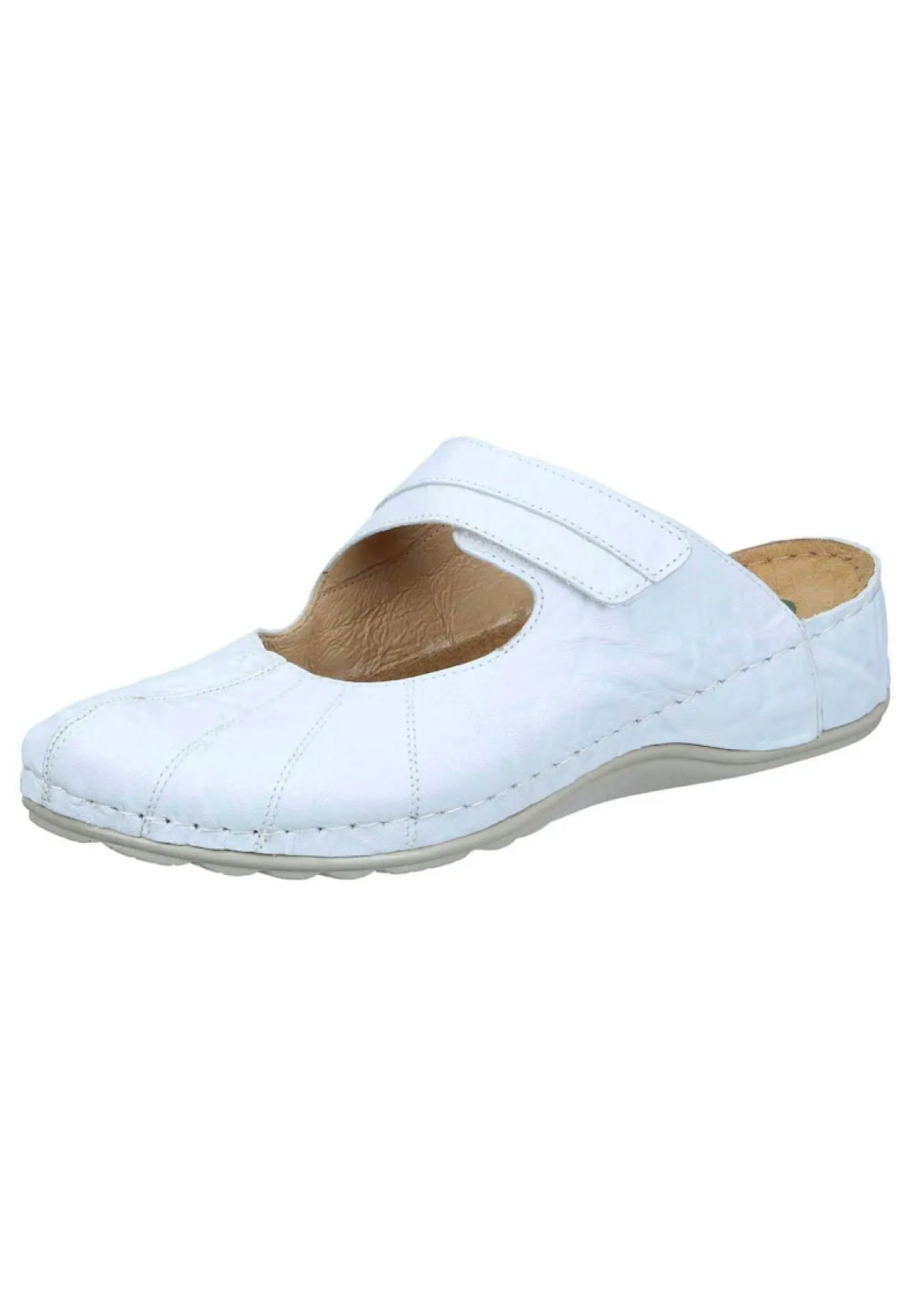Bei diesem Produkt handelt es sich um einen Schuh aus der Kategorie Komfort-Pantoletten für Damen. Als Obermaterial wurde Leder verwendet und im inneren Bereich des Schuhs wurde Lederfutter und Lederdecksohle verarbeitet. Die Schuhweite dieses Artikels ist Weite G und somit normal. Als Verschlussart wurde Schlupfschuh gewählt und die PU-Sohle rundet das Produkt ab. Der Artikel fällt normal aus, bitte die gewohnte Größe bestellen. – Schuhweite: Weite G –