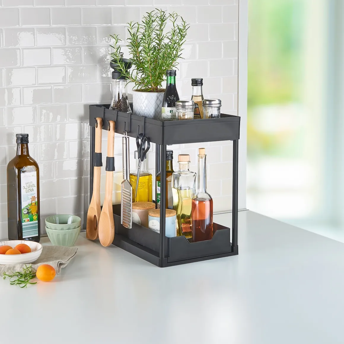 - alles griffbereit dank ausziehbarem Fach
