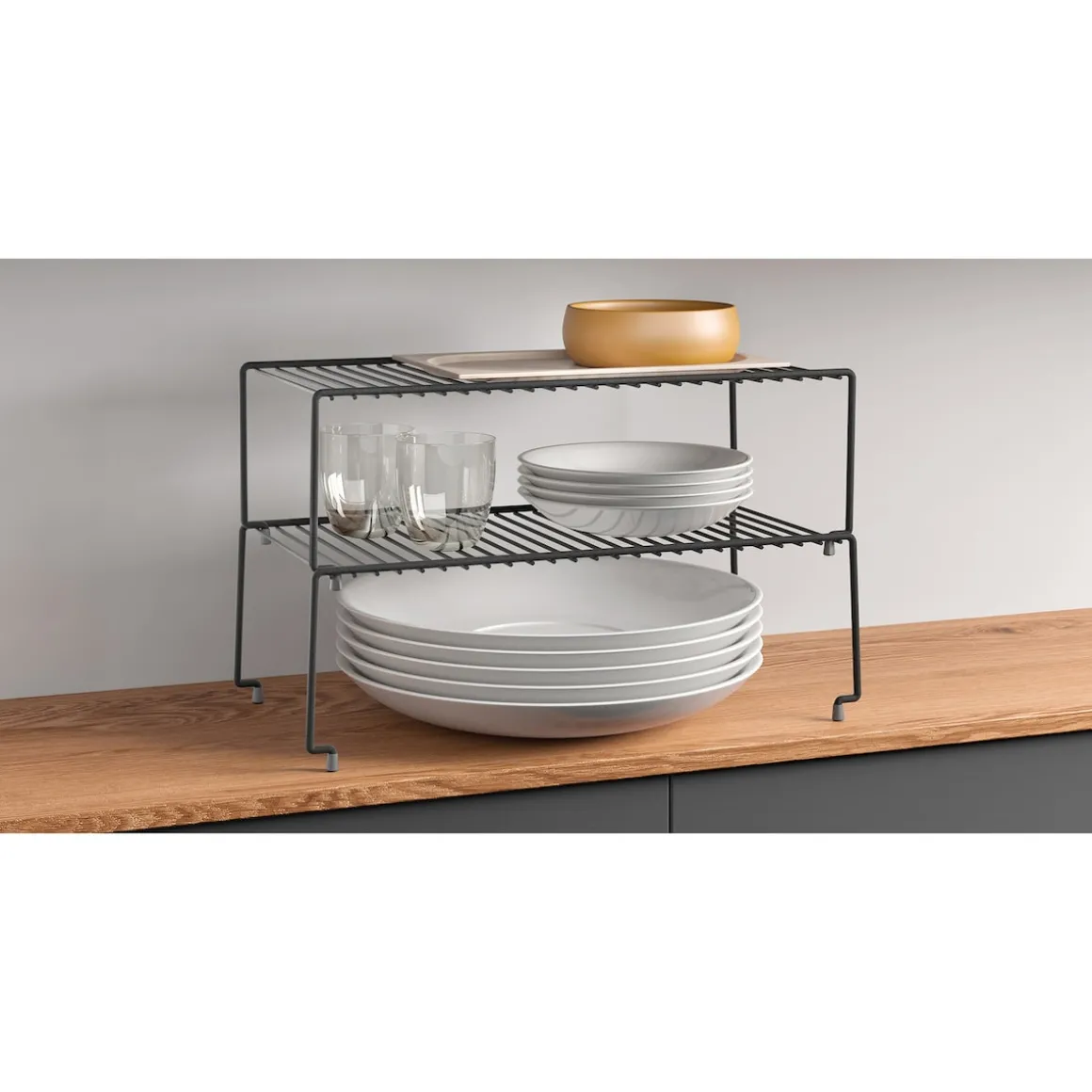 Mit dem stapelbaren Brooklyn LAVA Schrankeinsatz von Metaltex schaffen Sie im Handumdrehen zusätzlichen Stauraum und das mit minimalem Aufwand: Der Brooklyn Lava Schrankeinsatz lässt sich einfach in jedem Schrank aufstellen und als zusätzliche Ablagefläche nutzen. Praktisch: Dank der oberflächenschonenden Gummipuffer können Sie ihn auf Wunsch auch auf den Möbeln oder im Regal platzieren. Die mattschwarze Beschichtung steht ganz im Zeichen des angesagten Industrial Look und fügt sich perfekt in die Einrichtung ein.
