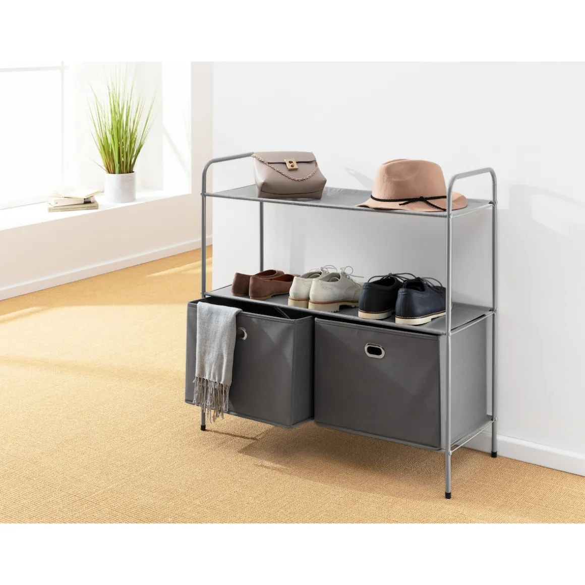 Verleihen Sie Ihren Schuhen ein Zuhause! Dieses Regal bietet nicht nur Platz für all Ihre Lieblingspaare, sondern auch für all die kleinen Dinge, die sonst überall herumfliegen. Praktisch: Die beiden Boxen können beliebig im Regal platziert werden, ganz nach Ihren Wünschen.