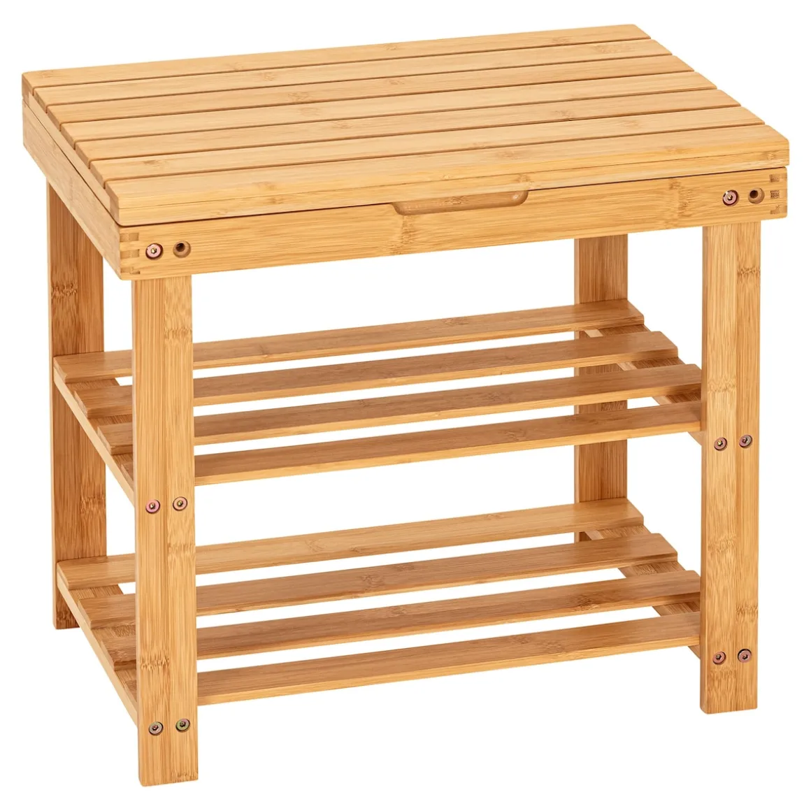 Die clevere Lösung für Komfort und Ordnung: In diesem multifunktionalen Möbelstück sind Ihre Schuhe stets ordentlich aufbewahrt. Die oberste Ebene dient gleichzeitig als bequeme Sitzgelegenheit, um sich mühelos die Schuhe an- und auszuziehen. Darüber hinaus bietet es eine integriertes Fach, in dem Sie all Ihre Pflegeutensilien verstauen können.