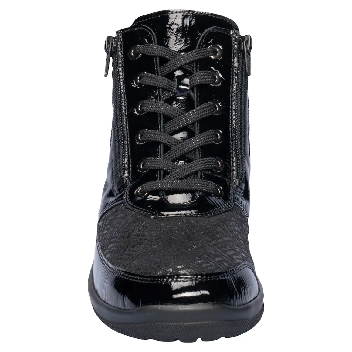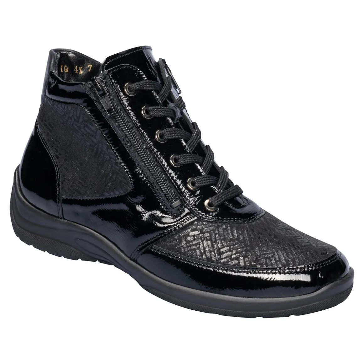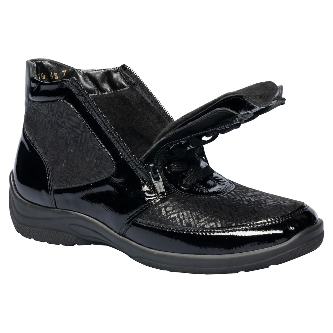Die extra weite Stiefelette bietet nicht nur einen stilvollen Look, sondern auch höchsten Tragekomfort durch das warme Innenfutter und die weiche Decksohle. Besonders praktisch: Für den einfachen Ein- und Ausstieg sorgt der seitliche Reißverschluss. Mit rutschhemmender Laufsohle. Absatz: 14 mm.