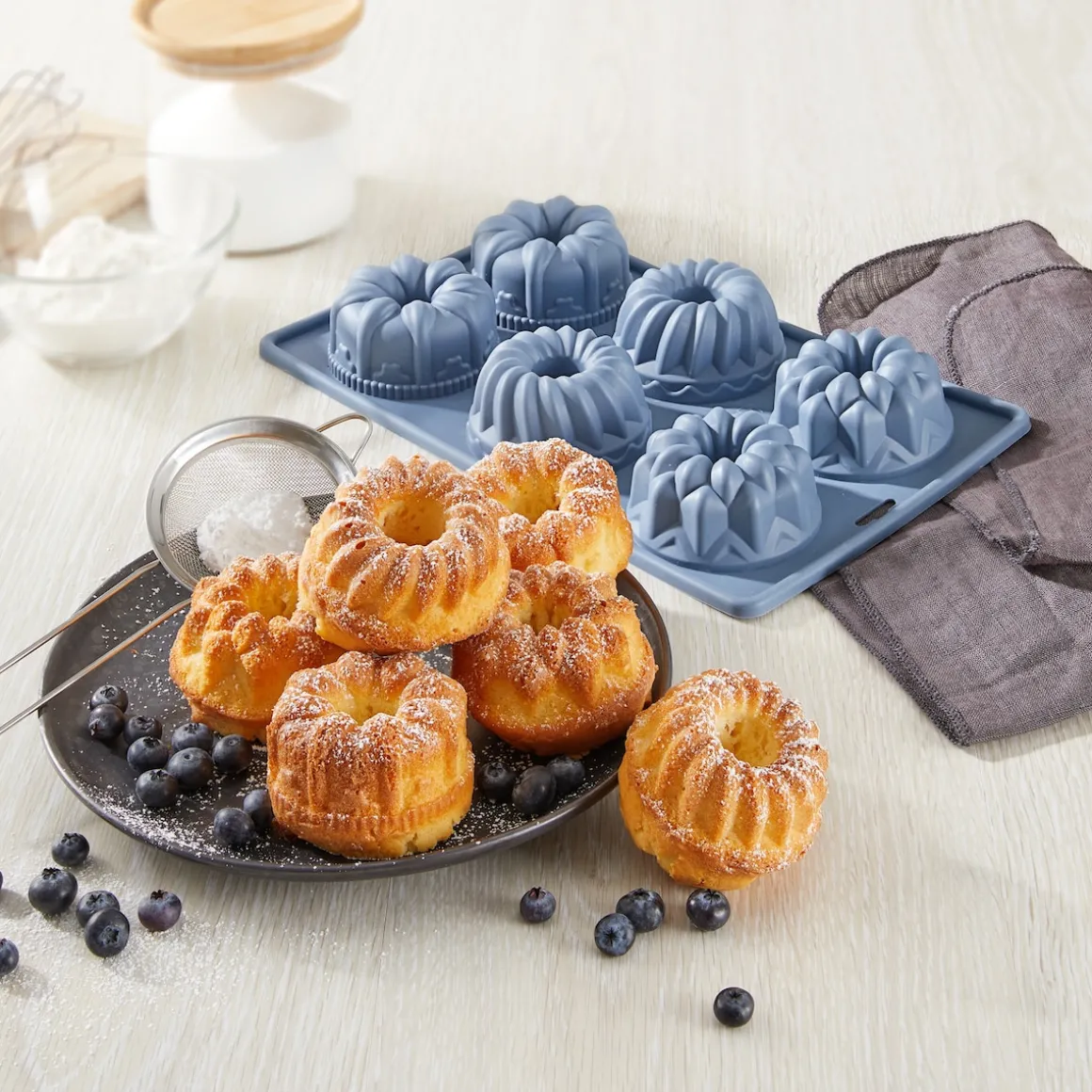 In dieser Backform backen Sie spielend leicht 6 kleine Köstlichkeiten in unterschiedlichen Optiken. Die flexible Form und die Antihaft-Oberfläche ermöglichen ein müheloses Herauslösen der Küchlein, sodass Sie sich ganz dem Genuss widmen können.
