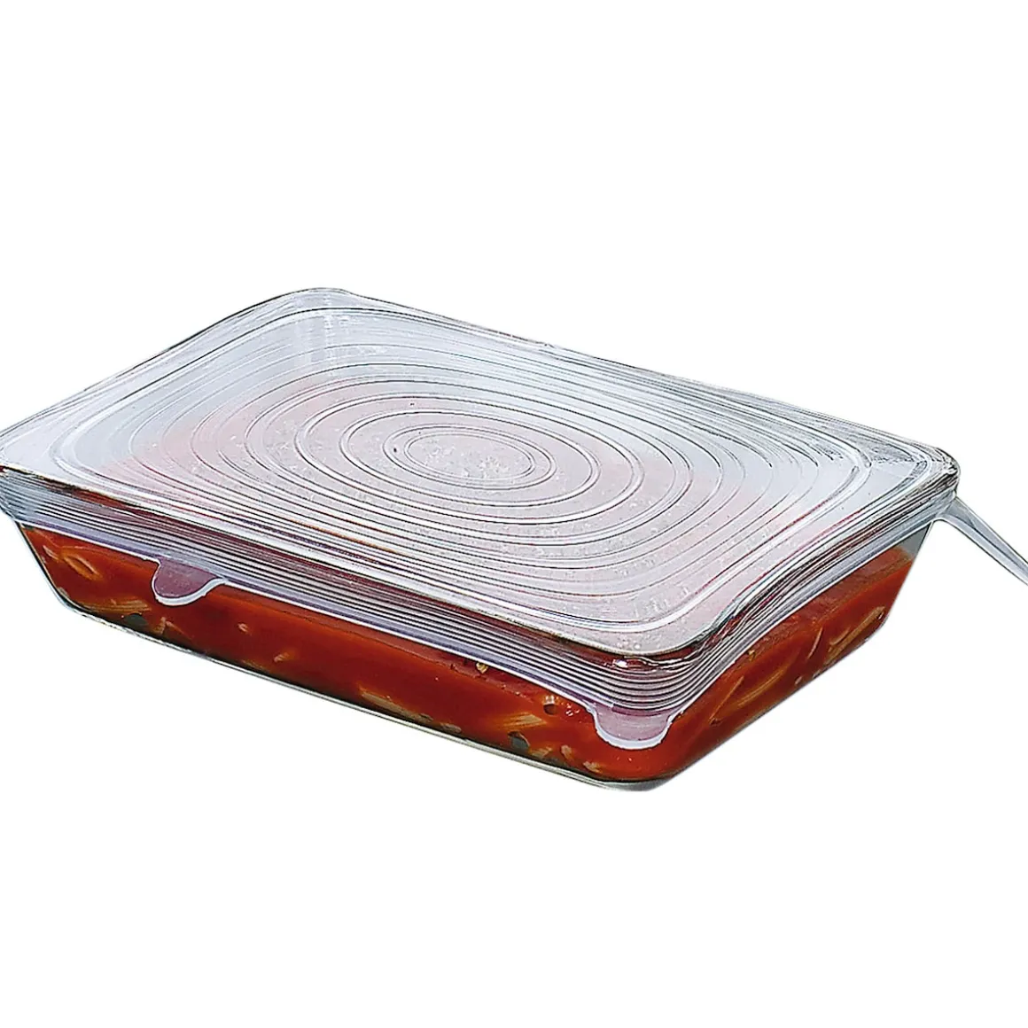 Mit den dehnbaren Silikondeckeln lassen sich Schüsseln, Gläser, Tassen oder Dosen luftdicht verschließen. Sie können für verschiedene Materialien wie Glas, Keramik oder Metall verwendet werden. Die Frischhaltedeckel schützen das Aroma von Lebensmitteln und verhindern gleichzeitig eine Geruchsbildung, Schimmel und Gefrierbrand. Dabei nehmen sie selbst keine Gerüche auf. Im Backofen oder der Mikrowelle vermeiden die Abdeckhauben Spritzer beim Erhitzen von Speisen. Im Kühl- oder Gefrierschrank sorgen sie dafür, dass Lebensmittel länger frisch bleiben und schließen Gerüche ein. Das stabile Material ist so robust, dass sich die Behälter platzsparend Stapeln lassen. Die dehnbaren Silikondeckel überzeugen durch ihre Langlebigkeit, Stabilität und Flexibilität.
