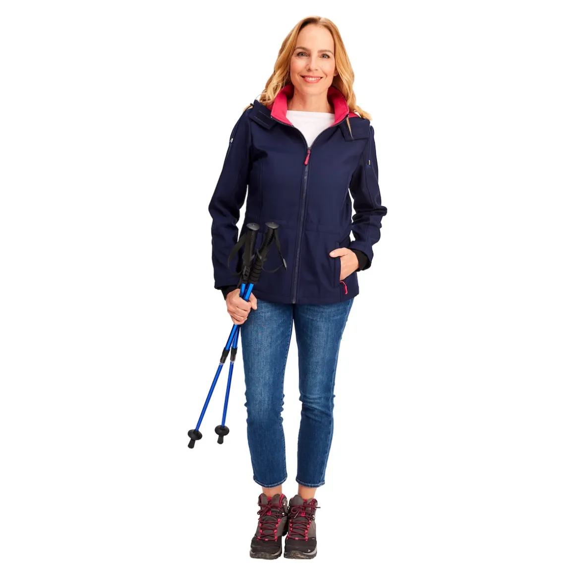 Wenn es draußen ungemütlich wird, ist diese Softshelljacke die richtige Wahl! Das kuschelige Fleece im Inneren wärmt angenehm, während die elastischen Bündchen eine ideale Passform und viel Bewegungsfreiheit garantieren. Mit seitlichen Eingrifftaschen und Frontreißverschluss. Die Jacke ist mit einem Tunnelzug in der Taille ausgestattet, sodass Sie die Passform individuell anpassen können.