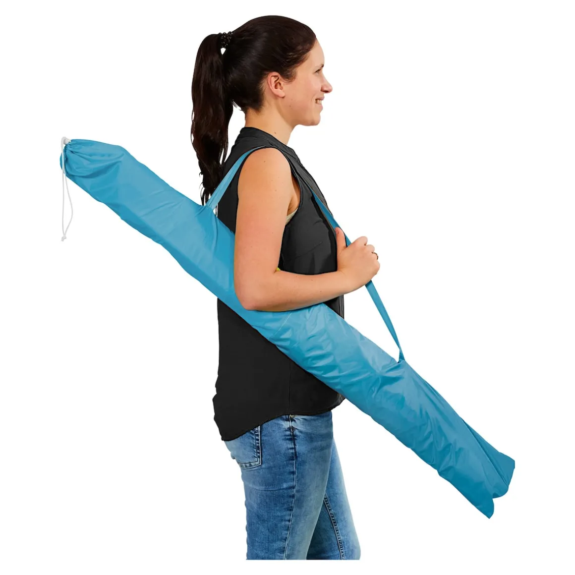 Praktisch: Dieser geniale Helfer lässt sich als Sonnenschirm verwenden und kann sich zusätzlich in eine gemütliche Strandmuschel verwandeln. Mit Heringen zur einfachen Befestigung und Tragetasche. UPF 25.