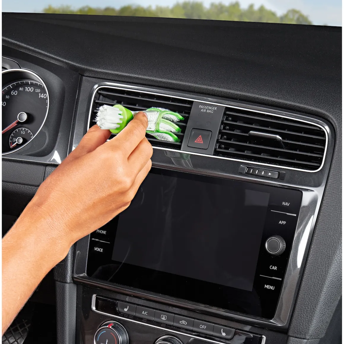 Unverzichtbar zur Reinigung und Pflege von Kfz-Armaturen, Tastaturen & Co. – enge Zwischenräume werden mit Bürste und Lappen im Nu staubfrei und sauber.