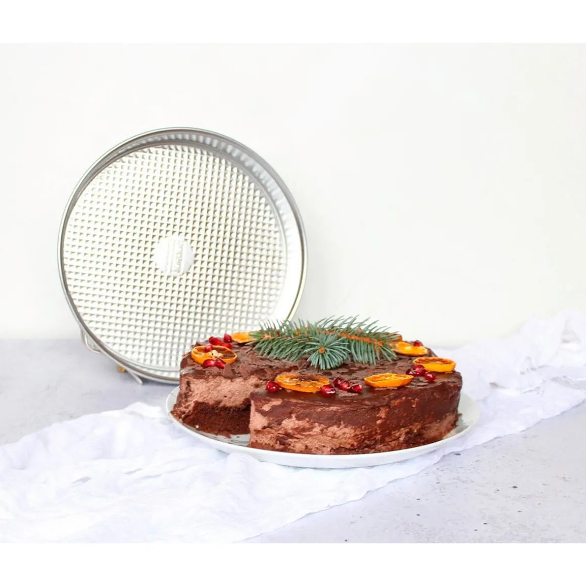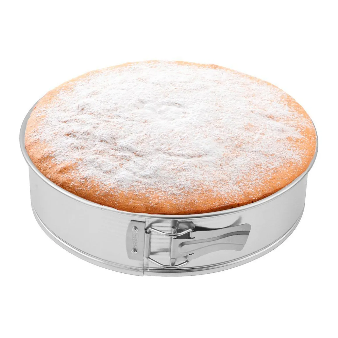 Ideal für Rührkuchen und aufwändige Torten: Die Springform mit Flachboden ist aus verzinntem Weißblech in Silber und dank der Rillenprägung im Springform-Ring besonders stabil. Eignet sich für Elektro- und Gasöfen.