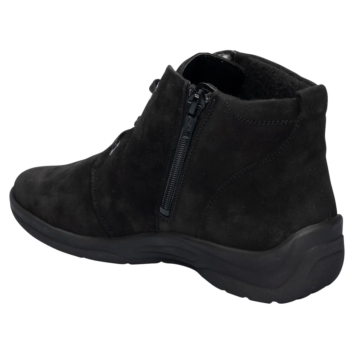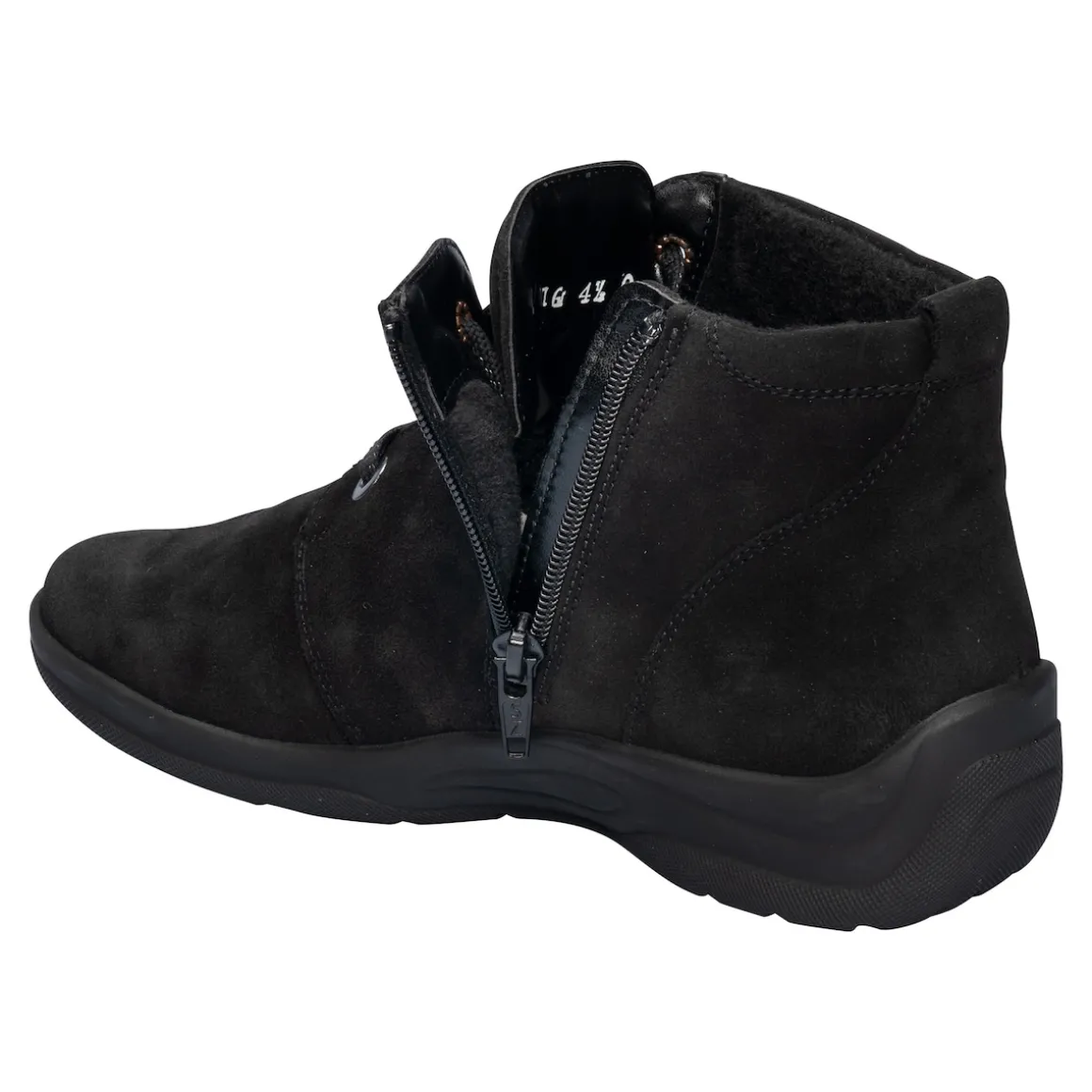 Die extra weite Stiefelette bietet nicht nur einen stilvollen Look, sondern auch höchsten Tragekomfort durch das warme Innenfutter und die weiche Decksohle. Besonders praktisch: Für den einfachen Ein- und Ausstieg sorgt der seitliche Reißverschluss. Mit rutschhemmender Laufsohle.
