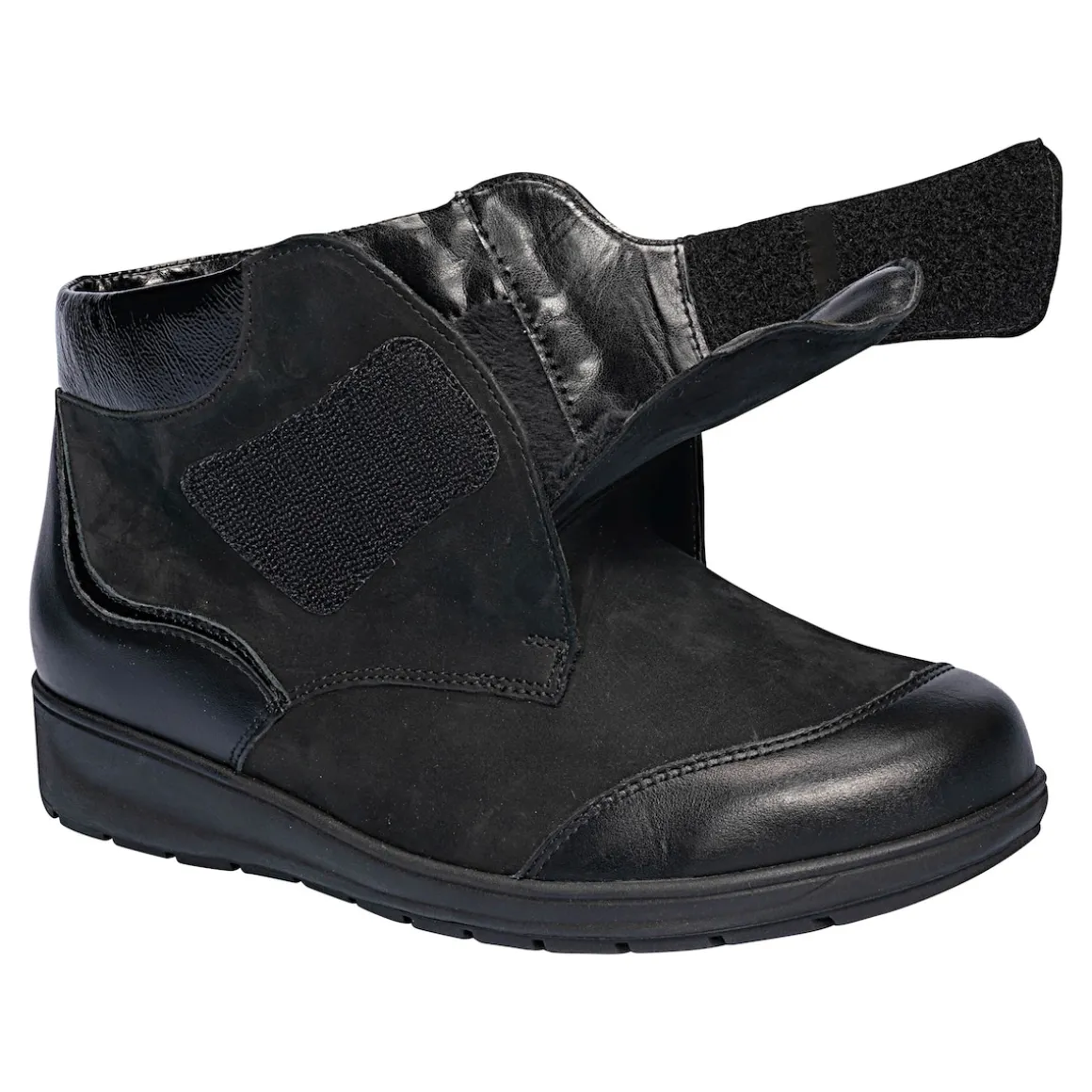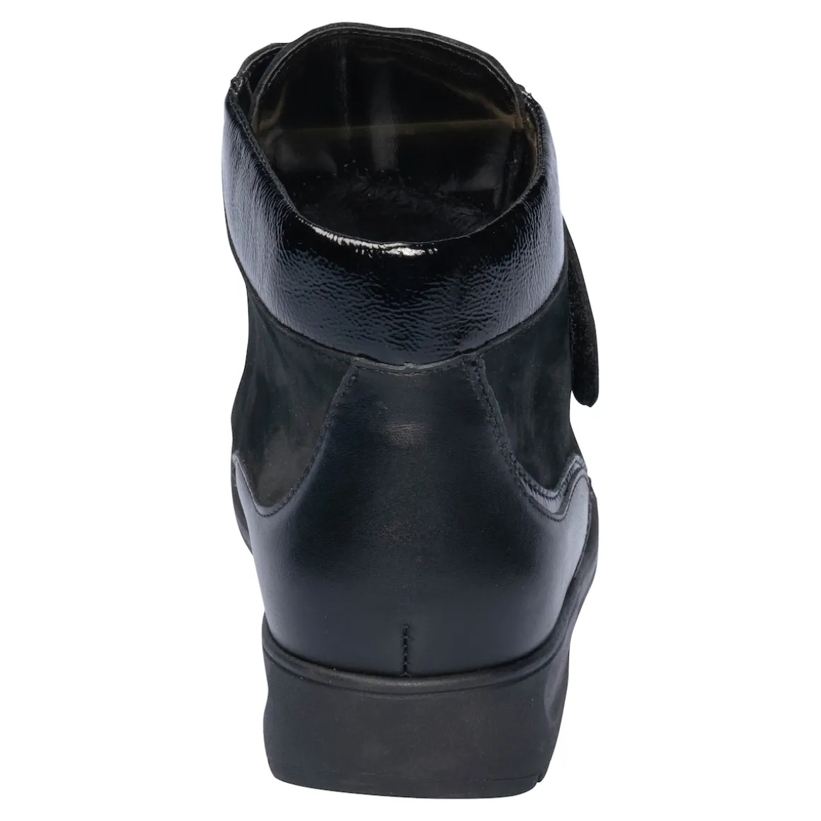 Überzeugt mit einem Material-Mix aus weichem Veloursleder, Glatt- und Lackleder-Einsätzen sowie femininen Details. Die Strass-Steinchen setzen einen stilvollen Akzent. Praktischer Klettverschluss für sicheren Halt und individuelle Anpassung. Mit rutschhemmender Laufsohle. Absatz: 15 mm.