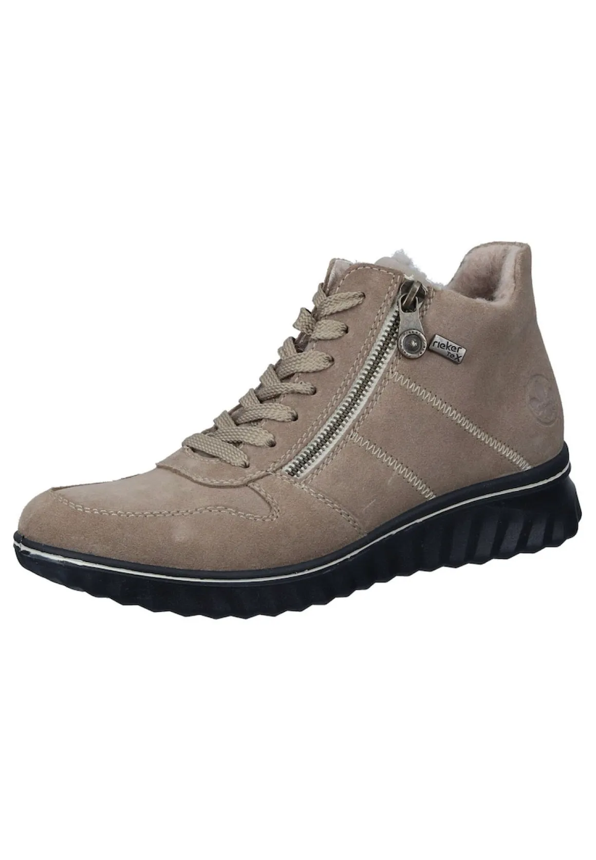 fango/congo, Veloursleder/RIEKER-TEX, Reißverschluss, Merinowolle, herausnehmbare gepolsterte, Textildecksohle, PU-Sohle – Schuhweite: Weite F –