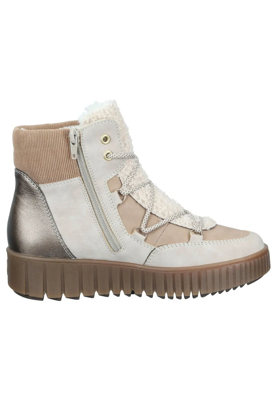Bei diesem Produkt handelt es sich um einen Schuh aus der Kategorie Freizeit Stiefel für Damen. Als Obermaterial wurde Synthetik verwendet und im inneren Bereich des Schuhs wurde Warmfutter und herausnehmbare gepolsterte Textildecksohle verarbeitet. Die Schuhweite dieses Artikels ist Weite F 1/2 und somit schmal. Als Verschlussart wurde Reißverschluss gewählt und die TR-Sohle rundet das Produkt ab. Der Artikel fällt normal aus, bitte die gewohnte Größe bestellen. – Schuhweite: Weite F 1/2 –