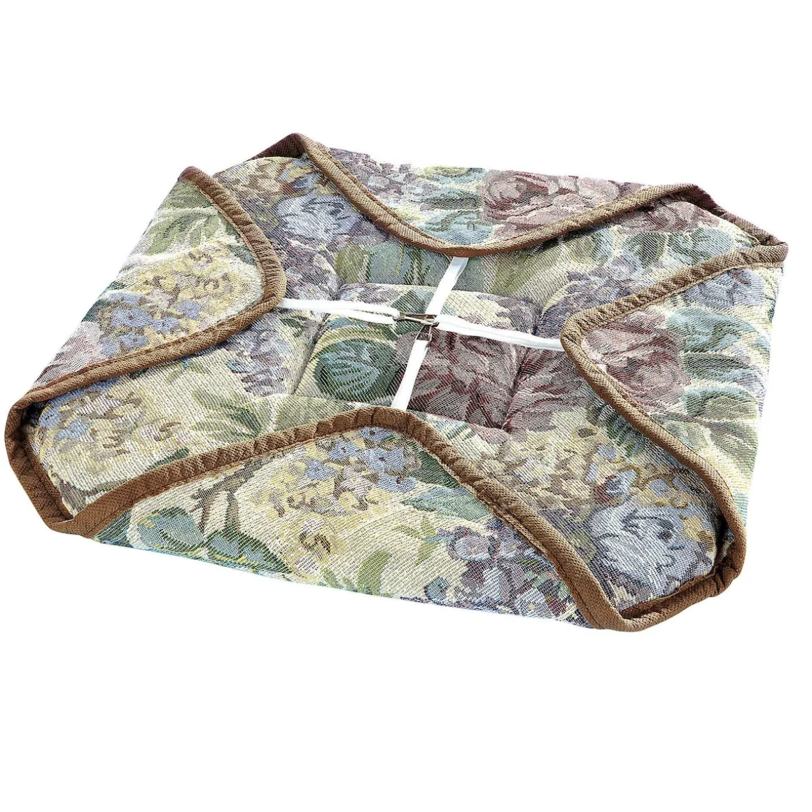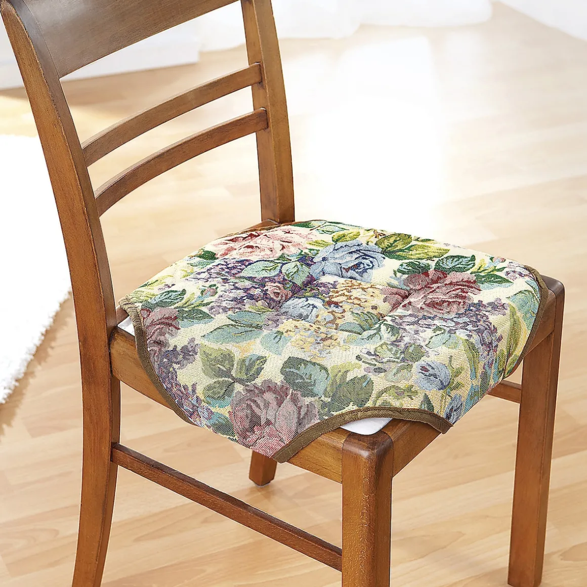 Das ändert sich mit dem Stuhl-Kissen „Gobelin“. Seine weiche Polsterung erhöht den Sitzkomfort. Die Gobelin-Optik frischt betagte Stühle auf. In gewebter Machart. Einfache und schnelle Fixierung mit Gummibändern.