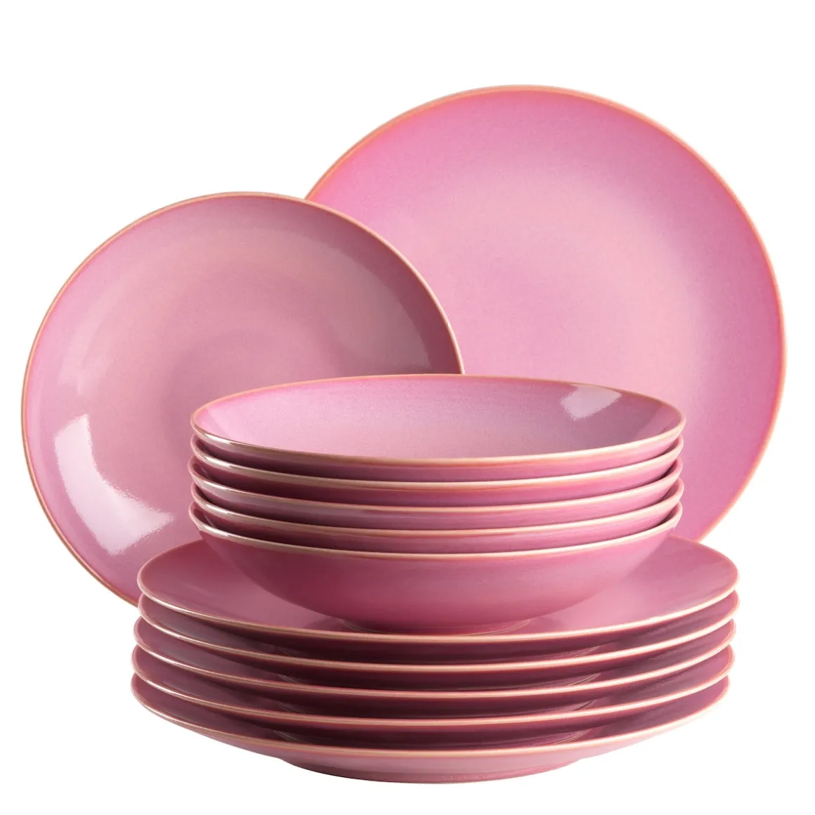 Dieses 12-teilige Essgeschirr Set für 6 Personen aus hochwertigem Keramik besteht aus