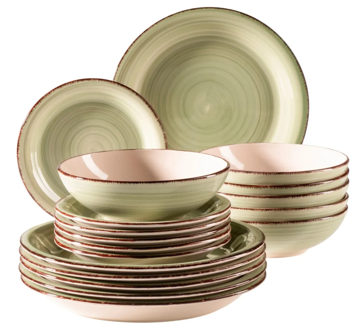 Die gesamte Serie LUMACA ist aus dickwandigem Steingut gefertigt. Mit den kreisförmig-verspielten Linienführungen kombiniert dieses Geschirr auf harmonische Weise klassische runde Formen mit einem farbenfrohen Vintage Look. LUMACA wird auch Ihren Esstisch zu etwas ganz Besonderem machen! Alle Service der Serie LUMACA sind dauerhaft spülmaschinen- und mikrowellengeeignet, und dadurch äußerst pflegeleicht. Dieses Tafelset wird in einer speziell für dieses Set entwickelten, vielfach getesteten Transportverpackung aus umweltschonenden Materialien versendet.