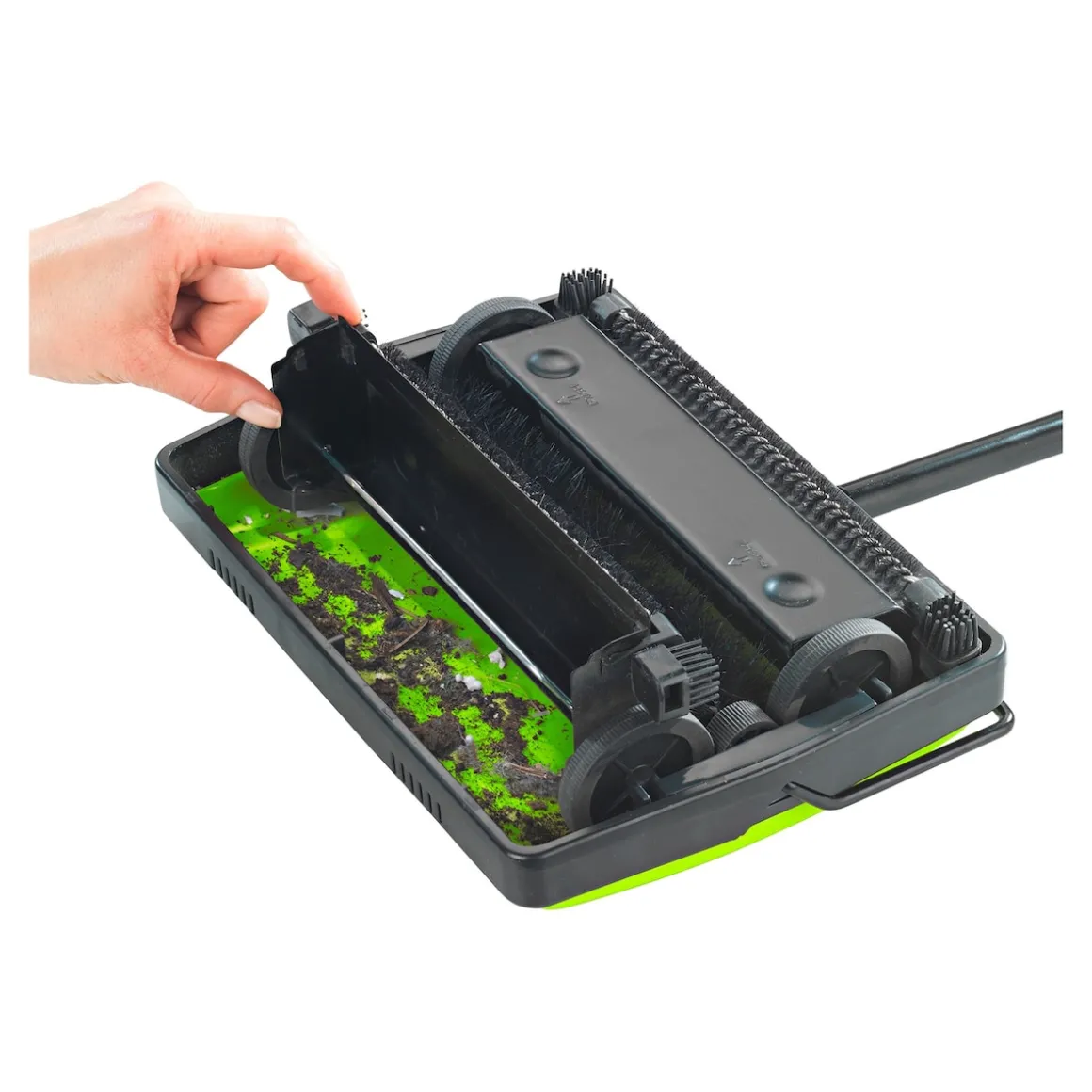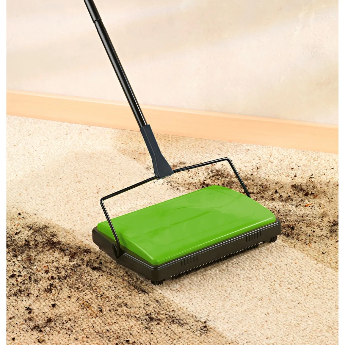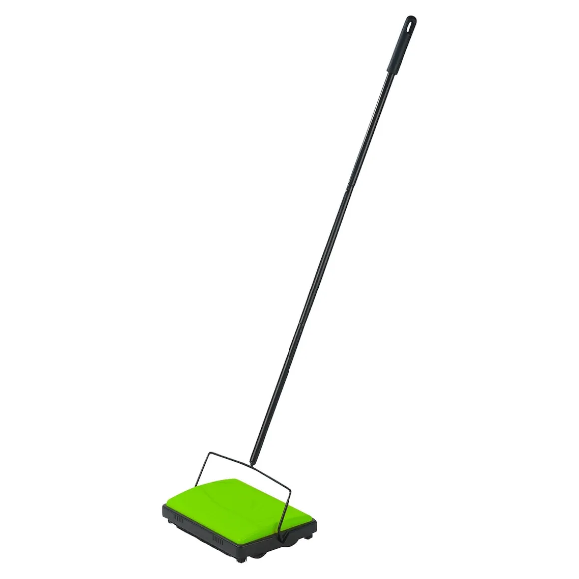Entfernt rasch den Schmutz. Immer sofort zur Hand, leise und kraftvoll. Für Teppiche, glatte Böden oder auch unter Möbeln. Klappbar und platzsparend zu verstauen. Keine Staubsaugerbeutel nötig. Metallgehäuse, 3-teiliger Stiel, Reinigungskamm.