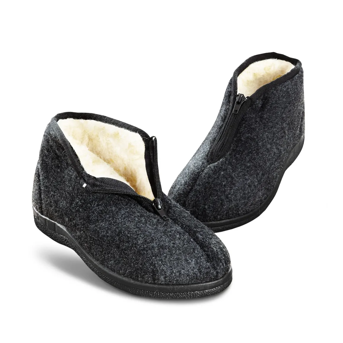 Spätestens im Herbst beginnt für viele Menschen wieder die Zeit der kalten Füße. Und das ist nicht nur unangenehm, sondern kann auch das Erkältungsrisiko erhöhen. Die gute Nachricht: Mit den beliebten Thermo-Hausschuhen sind kalte Füße kein Thema mehr. Denn das mollig warme Futter verhindert ein Auskühlen der Füße und hält sie rundum angenehm warm. Damit sind die Schuhe ein echter Wohlfühlfaktor in der kalten Jahreszeit. Der integrierte Reißverschluss auf der Vorderseite ermöglicht zudem ein einfaches An- und Ausziehen der Schuhe – auch für Senioren oder Personen mit Handicap.