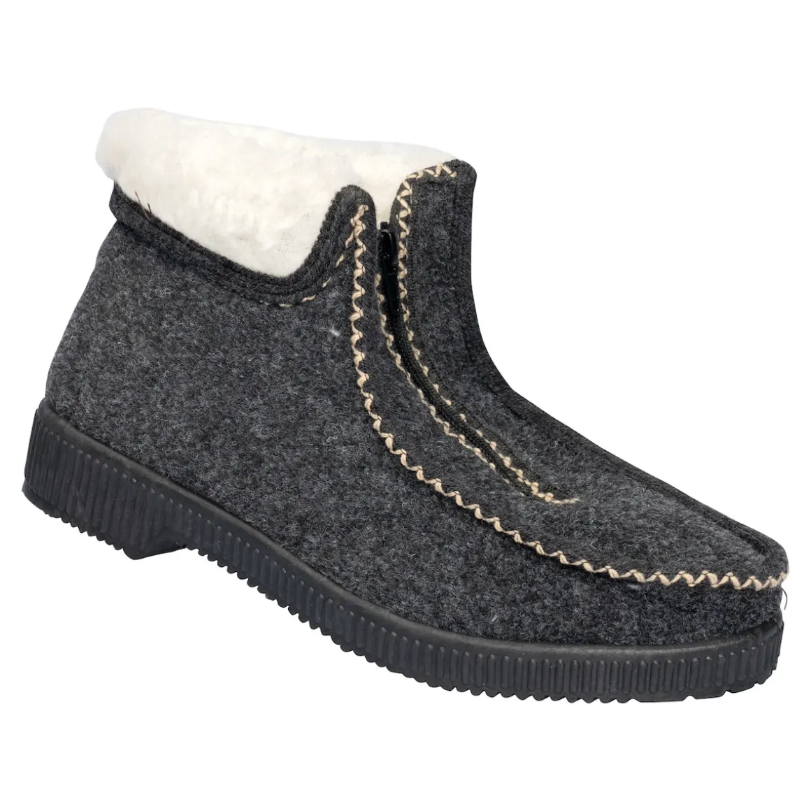 Gefütterte Stiefelette im trendigen Hüttenlook. Der Reißverschluss an der Vorderseite sorgt für einen leichten Ein- und Ausstieg – auch bei etwas breiteren Füßen und Waden. Mit rutschhemmender Laufsohle, daher auch für einen kurzen Gang nach draußen geeignet.