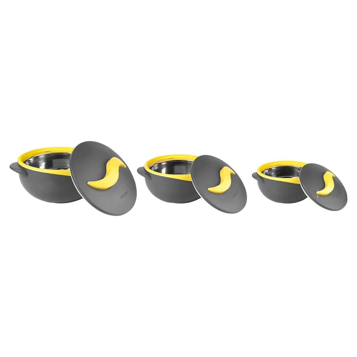 Gemeinsame Mahlzeiten sind schön, aber nicht immer möglich. In diesen Thermoschüsseln halten Sie vorbereitete Mahlzeiten für Ihre Familie dank Spezial-Edelstahl-Isolierung stundenlang warm oder kalt. Perfekt auch zum Mitnehmen für frische Salate oder Desserts. Die edel mattierten Oberflächen und das moderne Design machen sie auf dem Esstisch zum Hingucker! Besonders dichter Sicherheitsverschluss und Komfortgriffe.
