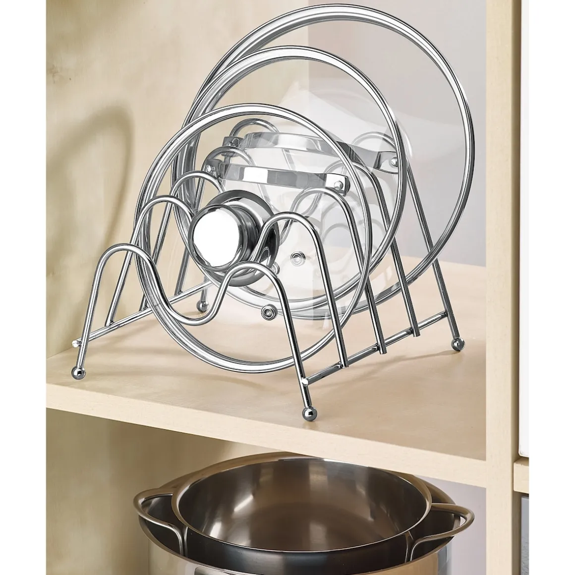 Neben dem Herd, der Spüle oder im Küchenschrank: Mit dieser Station sind Ihre Deckel ordentlich verstaut und griffbereit.