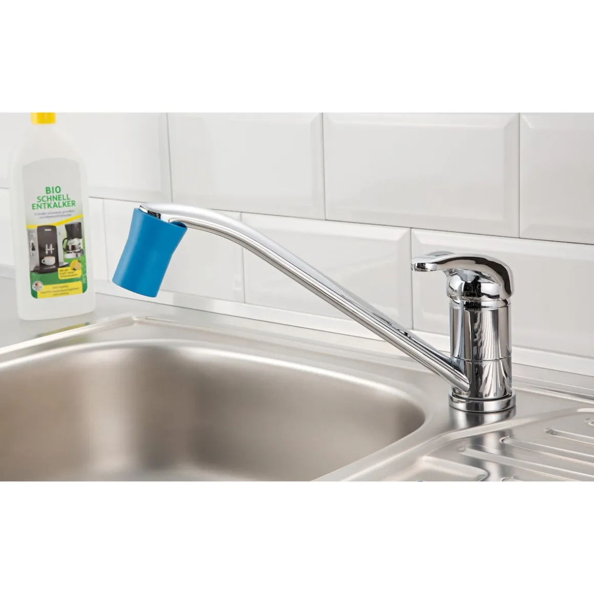 Schieben Sie die mit Entkalker befüllte Kappe einfach auf den Wasserhahn. Einwirken lassen, schon ist das Sieb entkalkt und das Wasser fließt wieder im vollen Strahl. Lieferung ohne Entkalker.