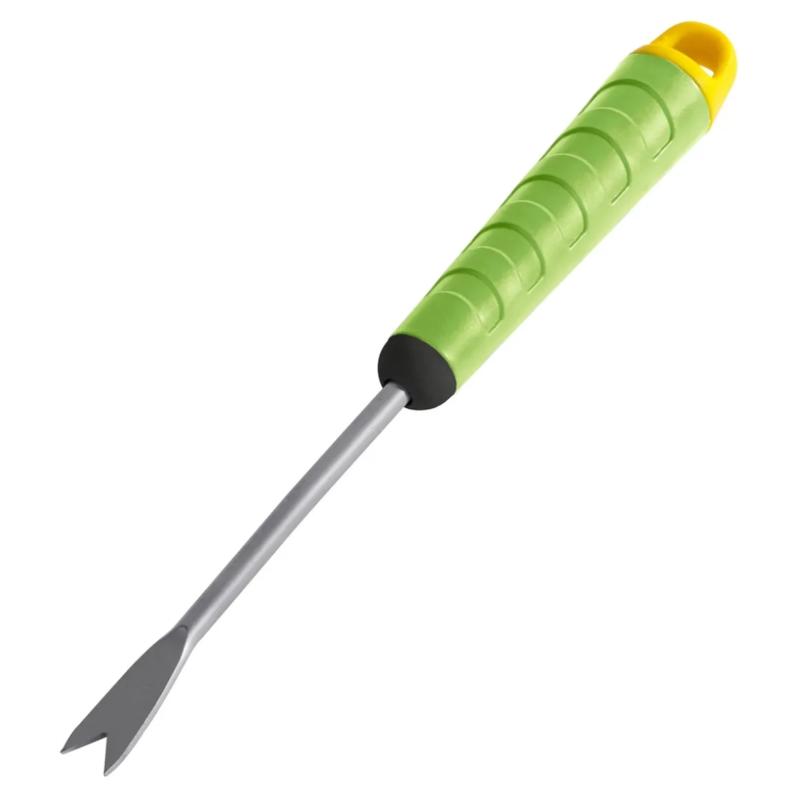Die wirkungsvollste Methode gegen Unkraut ist noch immer das Entfernen samt Wurzel. Mit diesem Stecher dringen Sie tief genug ein um die lästigen Wurzeln tief im Erdreich auszustechen. Mit Aufhänger und geriffeltem Griff.