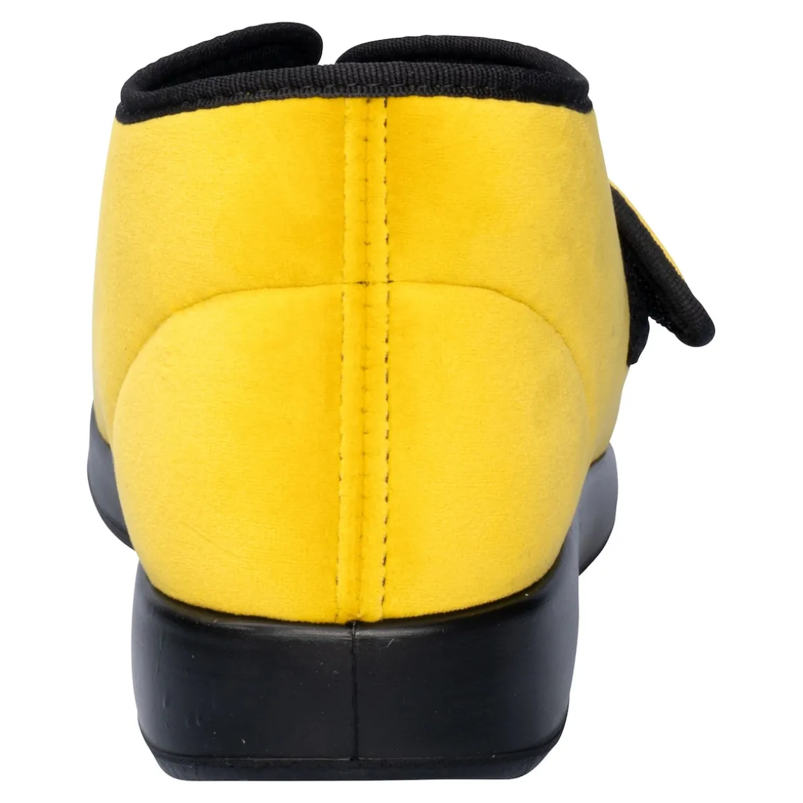Angenehmer Sitz und komfortables An- und Ausziehen, dank breitem Klettverschluss und bequemer Weite L. Weiches Frotteefutter – damit bleiben die Füße immer schön warm. Mit 3 mm Weichschaumeinlage und rutschhemmender PU-Laufsohle.