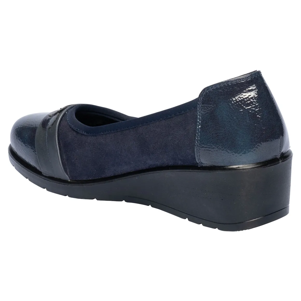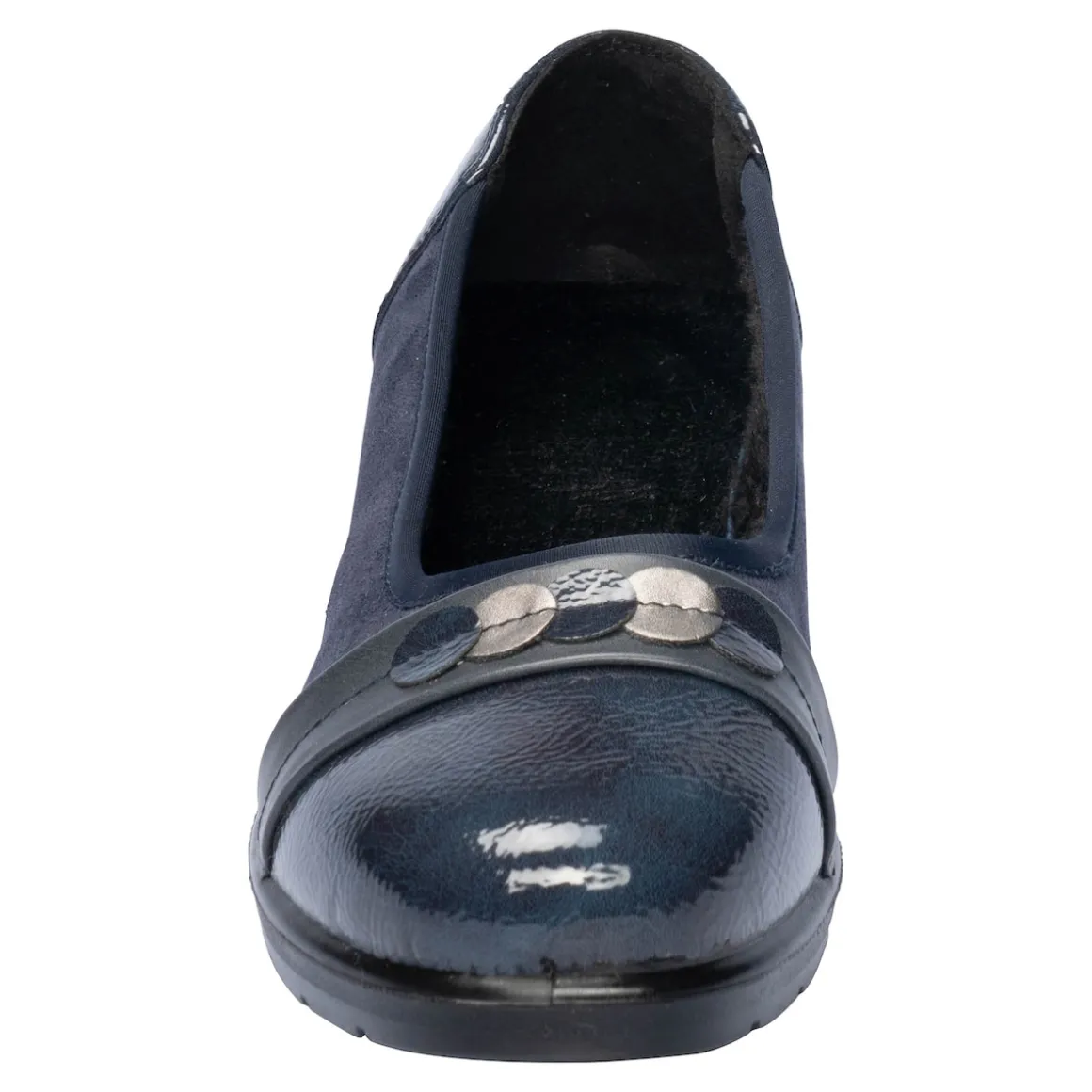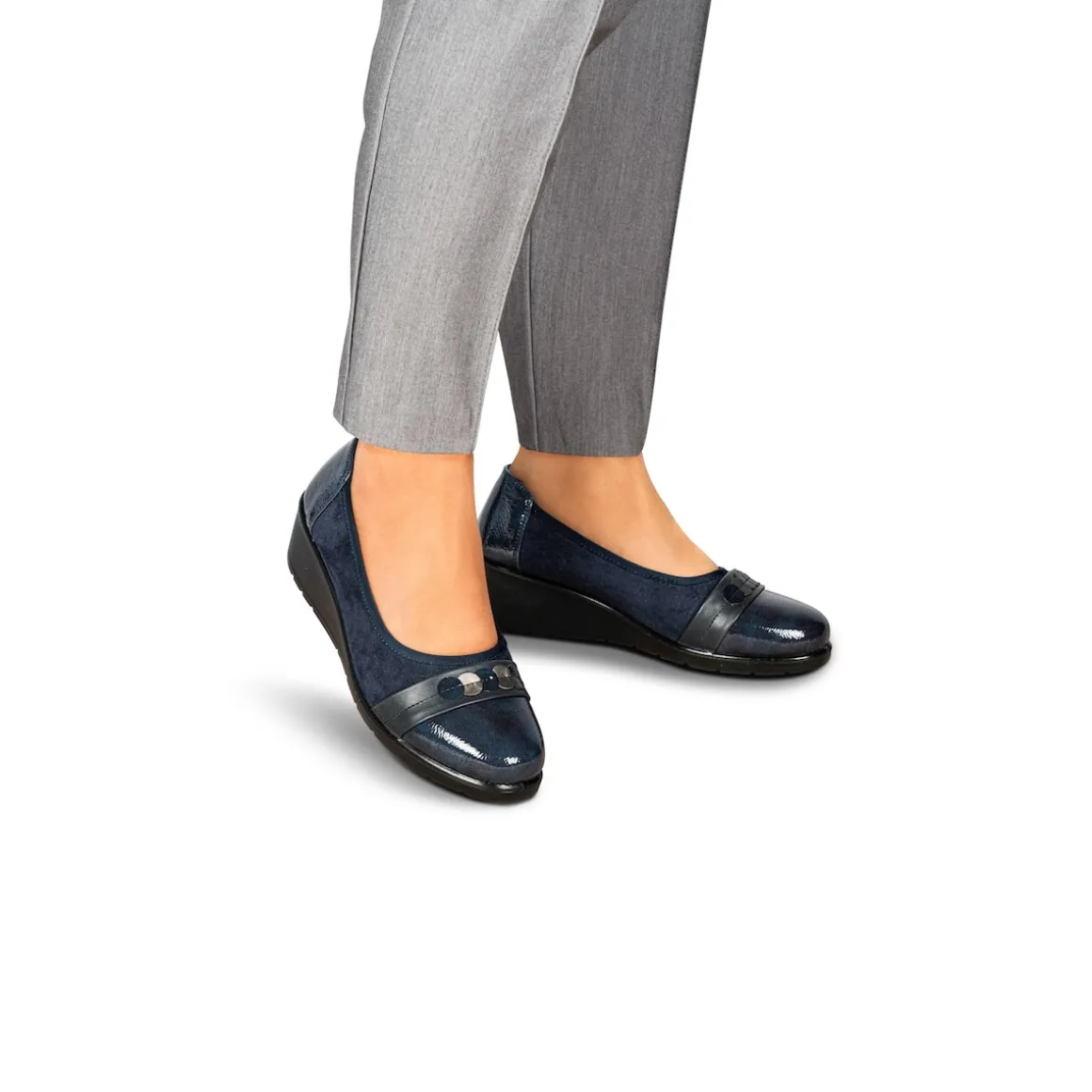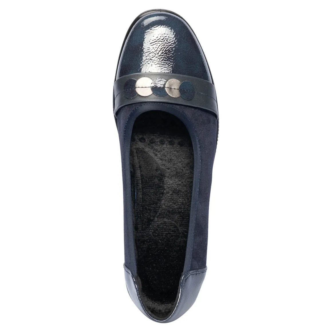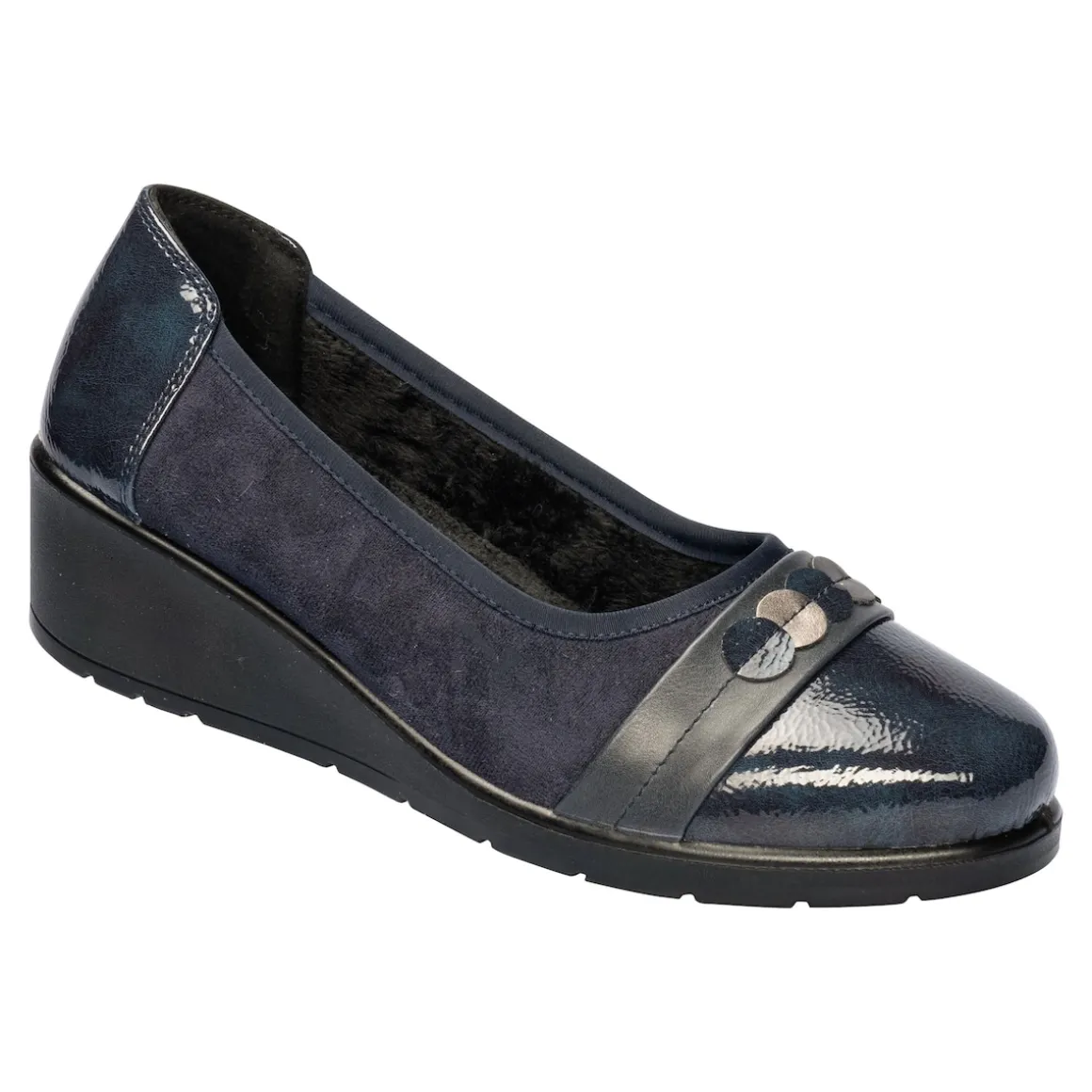 Dieser Ballerina bietet beste Bequemlichkeit! In seiner eleganten Optik versteckt sich kuschelig warmes Futter, das Ihre Füße an kalten Tagen verwöhnt. Er punktet mit einem modischen Material-Mix in Lack- und Veloursleder-Optik, dem komfortablen Keilabsatz sowie einer attraktiven Verzierung auf dem Rist. Die bequeme Laufsohle und weiche Decksohle runden den Tragekomfort ab.