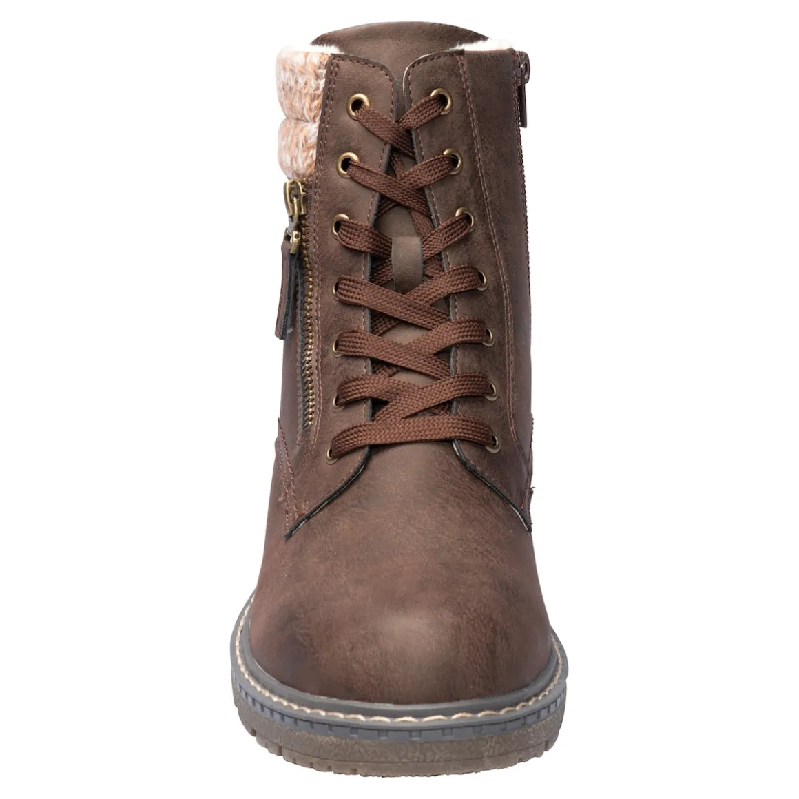 Perfekt für die Übergangszeit: Diese gefütterte Stiefelette in Leder-Optik trägt Sie durch jedes Wetter. Dank Reißverschluss leicht an- und auszuziehen. Mit rutschhemmendem 3,5 cm-Blockabsatz.