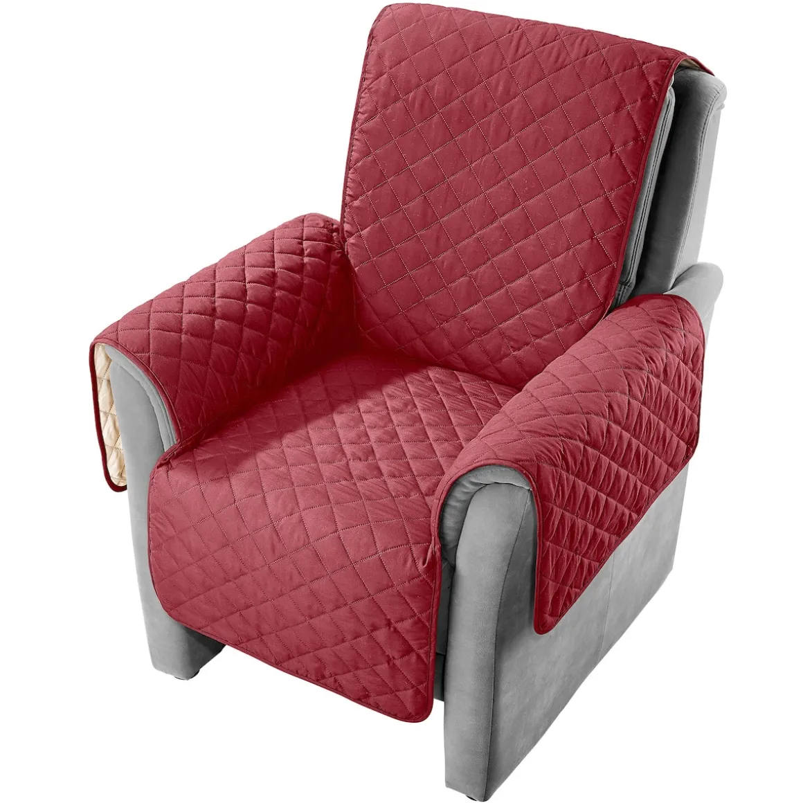 Sie mögen die Abwechslung? Kein Problem: Die Sesselschoner sind von beiden Seiten einsetzbar. Auf der einen Seite besitzt der Bezug eine unifarbene Stepp-Optik, auf der anderen ein mehrfarbiges Muster. Zur Auswahl stehen verschiedene Varianten wie zum Beispiel das Modell Safari, das auf der einen Seite braun und auf der anderen Seite mit verschiedenen Tierprints (Leo, Zebra) versehen ist.