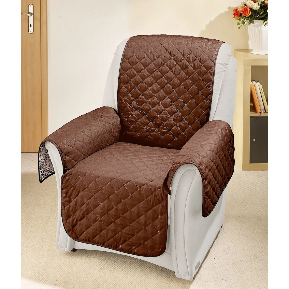 Sie mögen die Abwechslung? Kein Problem: Die Sesselschoner sind von beiden Seiten einsetzbar. Auf der einen Seite besitzt der Bezug eine unifarbene Stepp-Optik, auf der anderen ein mehrfarbiges Muster. Zur Auswahl stehen verschiedene Varianten wie zum Beispiel das Modell Safari, das auf der einen Seite braun und auf der anderen Seite mit verschiedenen Tierprints (Leo, Zebra) versehen ist.