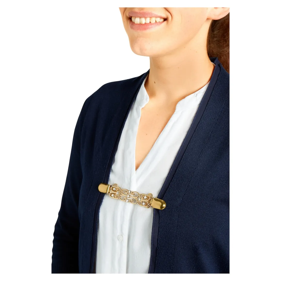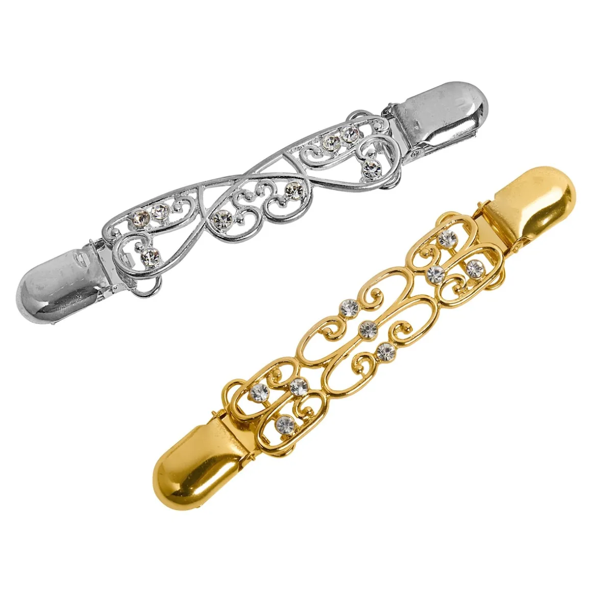 Ihre Weste lässt sich nicht schließen? Diese gold- und silberfarbenen, filigranen Klipps halten Ihre Weste vorne elegant zusammen! Für mehr Taille – Klipp hinten anbringen.