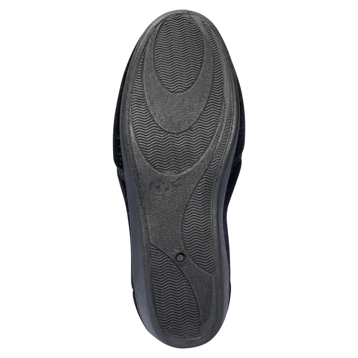 Freuen Sie sich auf einen Hausschuh, der Ihren Schritten einen funkenden Auftritt verleiht: Mit seinem warmen Futter und den dezenten Glitzerpailletten bietet er nicht nur einen Hauch von Glamour, sondern auch höchsten Tragekomfort. Für einen leichten Ein- und Ausstieg und optimalen Sitz sorgen die elastischen Einsätze über dem Rist. Mit weicher Decksohle und rutschhemmender Laufsohle.