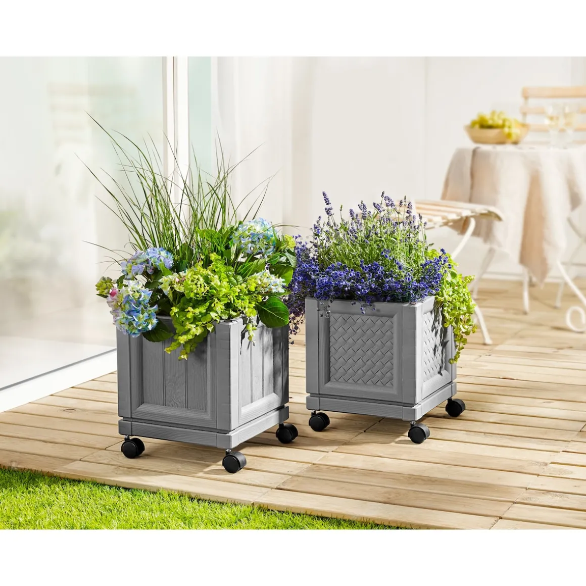 Erfüllen Sie sich Ihre eigenen Gemüse-Träume! Ziehen Sie köstliche Tomaten oder üppige Kletterpflanzen an den praktischen Rankhilfen heran. Dank seiner 2 Wendeplatten in geflochtener Rattan- und Holzbalkenoptik passen sich die Töpfe nicht nur schnell Ihren Wünschen an, sondern lassen sich auf 4 Rollen auch mühelos verschieben.
